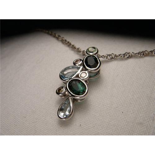 <tr><td>Title:18K WG Peridot Tourmaline Aquamarine Pendant</td></tr>