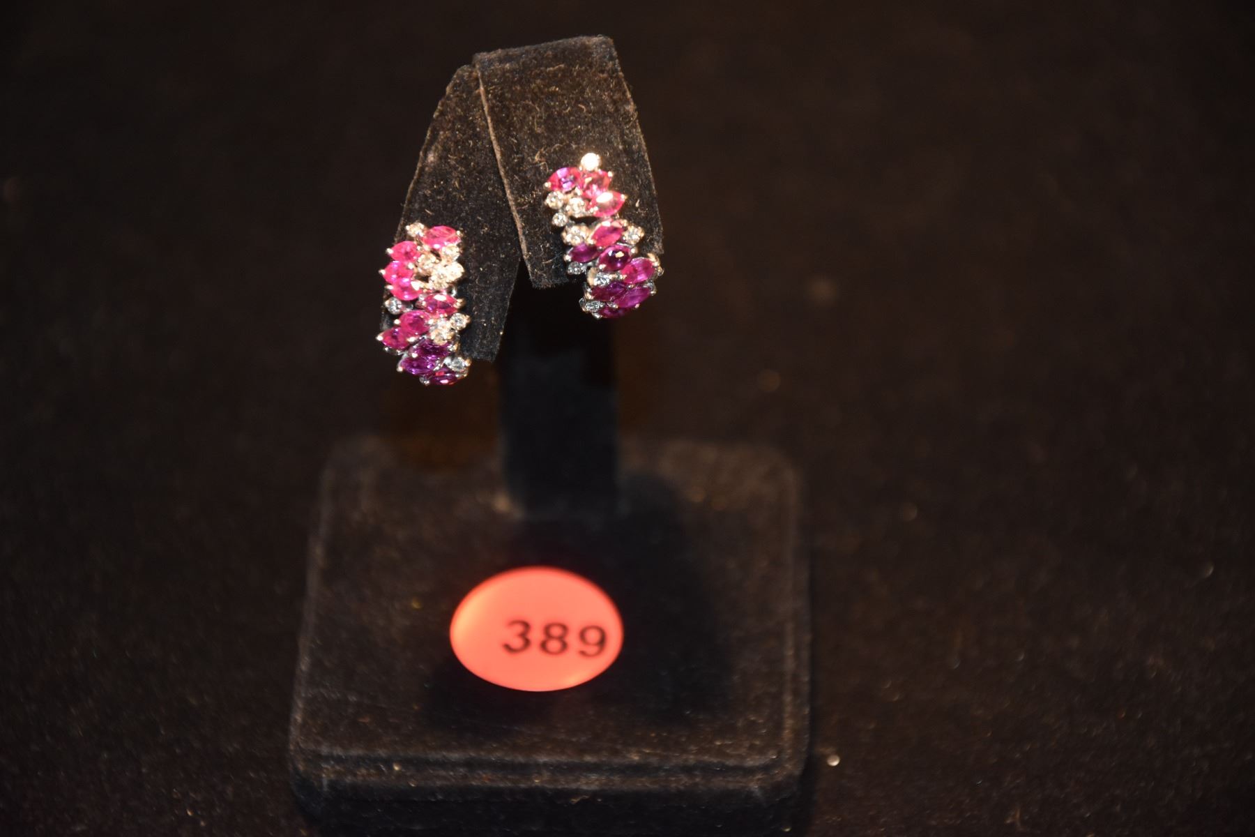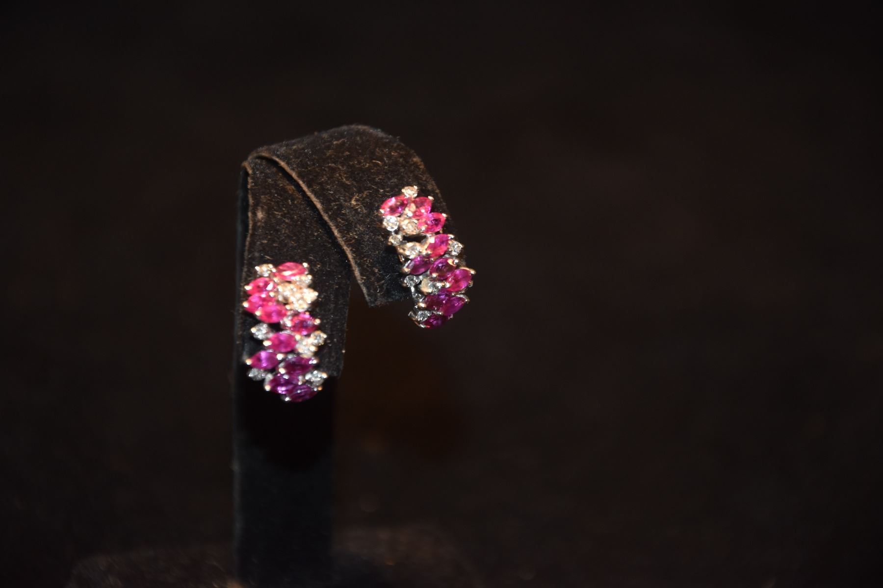 18K WG RUBY & DIAMOND EARRINGS (20 MARQUIS CUT RUBBIES (APPROX. 3 4/5 CTS) & 20 SMALL SINGLE-CUT DIAMONDS (APPROX 2/5 CT.) (APPROX. VS-SI)) (4.5 G) (MISSING 1 EARRING BACK) (TESTED)
