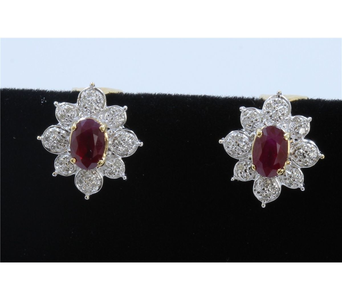 18K WHITE AND Yellow Gold Ruby Earring:5.5gRuby:2eaDiamond:0.36ct