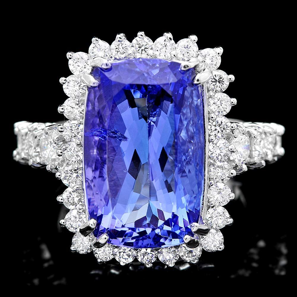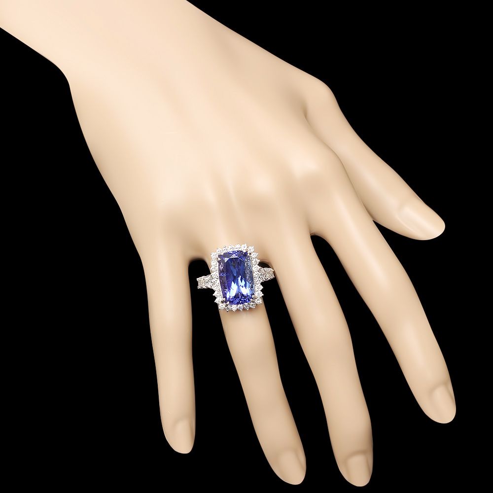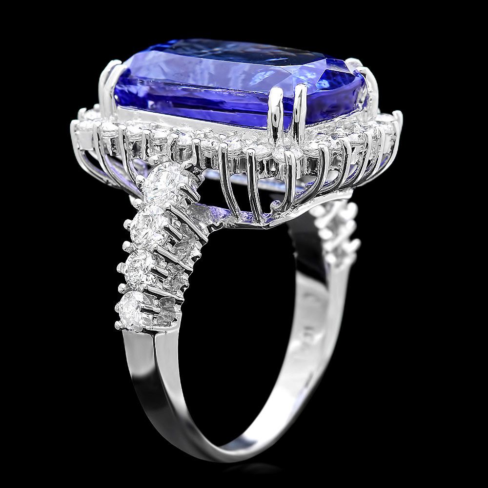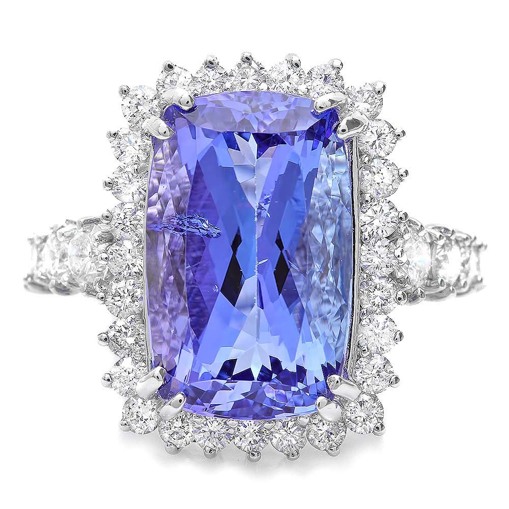 Retail: $38600.00 ****** Metal: 18k Solid White Gold / Size: 7 / Total Item Weight: 10.0 grams / Country Made: USA / / Main Stone: Tanzanite / Color: Blue / Carat Total Weight: 11.00 / Treatment: Heating / Clarity: Type 2 / Cut: Very Good / / Secondary Stone: Diamond / Carat Total Weight: 1.80 / Treatment: None / Color Grade: G - H / Clarity: SI1 - SI2 / Cut: Very Good / ****** Ref: JQL-R-5806