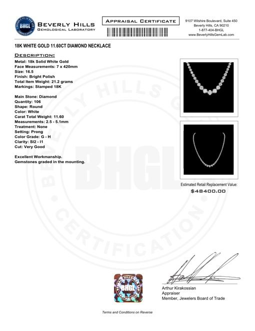 Retail: $48400.00 ****** Metal: 18k Solid White Gold / Size: 16.5 / Total Item Weight: 21.2 grams / / Main Stone: Diamond / Color: White / Carat Total Weight: 11.60 / Treatment: None / Color Grade: G - H / Clarity: SI2 - I1 / Cut: Very Good / ****** Ref: JQL-N-9959