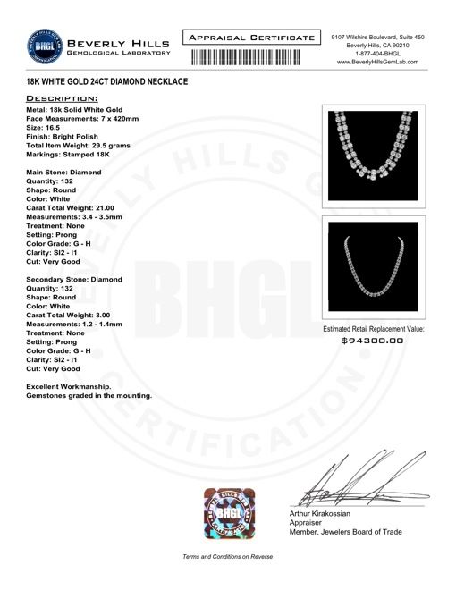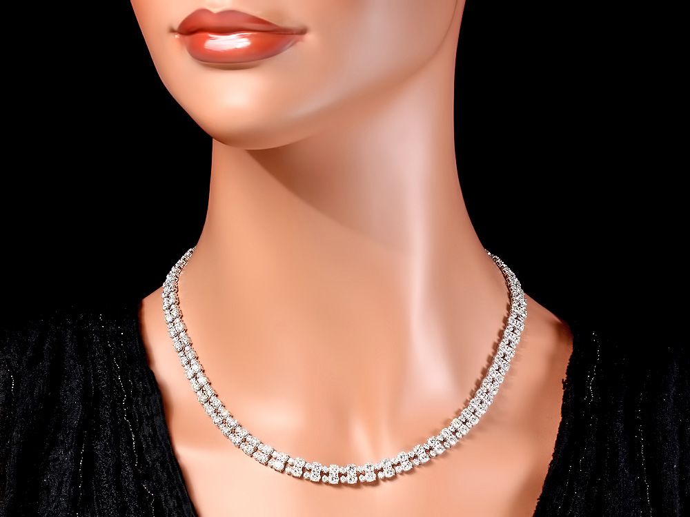 Retail: $94300.00 ****** Metal: 18k Solid White Gold / Size: 16.5 / Total Item Weight: 29.5 grams / / Main Stone: Diamond / Color: White / Carat Total Weight: 21.00 / Treatment: None / Color Grade: G - H / Clarity: SI2 - I1 / Cut: Very Good / / Secondary Stone: Diamond / Carat Total Weight: 3.00 / Treatment: None / Color Grade: G - H / Clarity: SI2 - I1 / Cut: Very Good / ****** Ref: JQL-N-9960