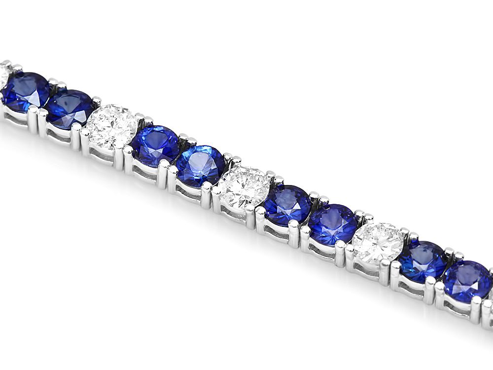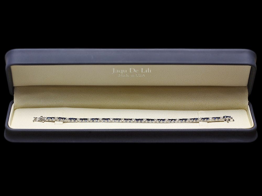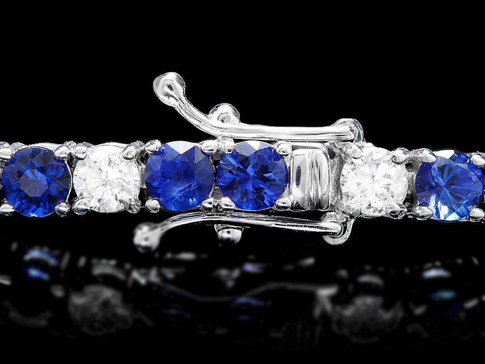 Retail: $18900.00 ****** Metal: 18k Solid White Gold / Size: 7 / Total Item Weight: 11.5 grams / Country Made: USA / / Main Stone: Sapphire / Color: Blue / Carat Total Weight: 6.50 / Treatment: Diffusion / Clarity: Type 2 / Cut: Very Good / / Secondary Stone: Diamond / Carat Total Weight: 2.70 / Treatment: None / Color Grade: H - I / Clarity: SI1 - SI2 / Cut: Very Good / ****** Ref: JQL-BR-6938