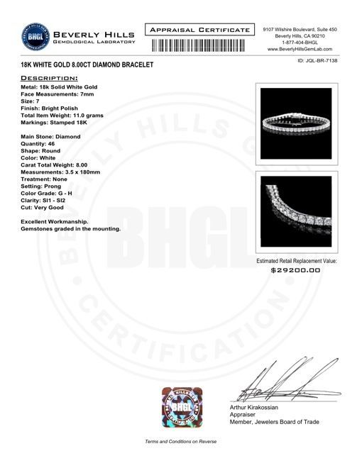 Regarding Appraised Jewelry and Loose Stones - WESTBURY AUCTION GALLERIES sends them out to a third party for Retail Replacement Value Appraisals, which are the most common. These types of evaluations are written for insurance needs. This would be the cost to replace the jewelry with an item of equal quality and kind, considered to be the current market price or the replacement value. This type of appraisal is done to protect you in the event of damage or loss of a valuable item. Our appraisals are conducted by independent 3rd Party appraisal firms that utilizes Certified GIA Gemologist. Appraisals should be used for verification of gemstone and/or metal weight, size, and grade only, not actual value. Appraisal value should be considered for insurance purposes only, not actual value, as price varies greatly from retail locations thru out the world. Items should not be purchased with the expectation to resell for appraisal price, or for profit.