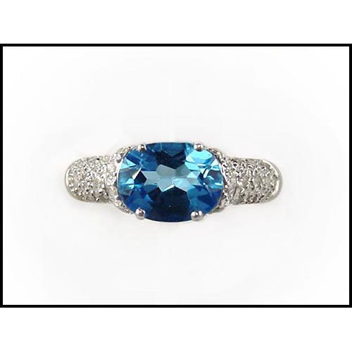 This solid 18K white gold ring is set with a collection color natural topaz that exhibits very high brilliance. It weighs 1.90 carats.32 side diamonds that have combined weight of .25cts are perfect contrast. The ring weighs 4.2 grams, and is size 7. May be changed bigger or smaller. The tag price of $495.00 was more than fair, yet you can own it for just a fraction of that.