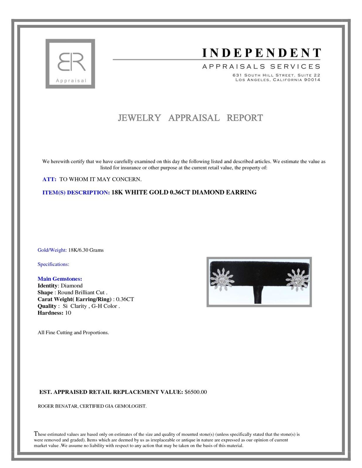 18K WHITE GOLD DIAMOND EARRING:6.30 GRAMS/DIAMOND:0.36CT/#R8026