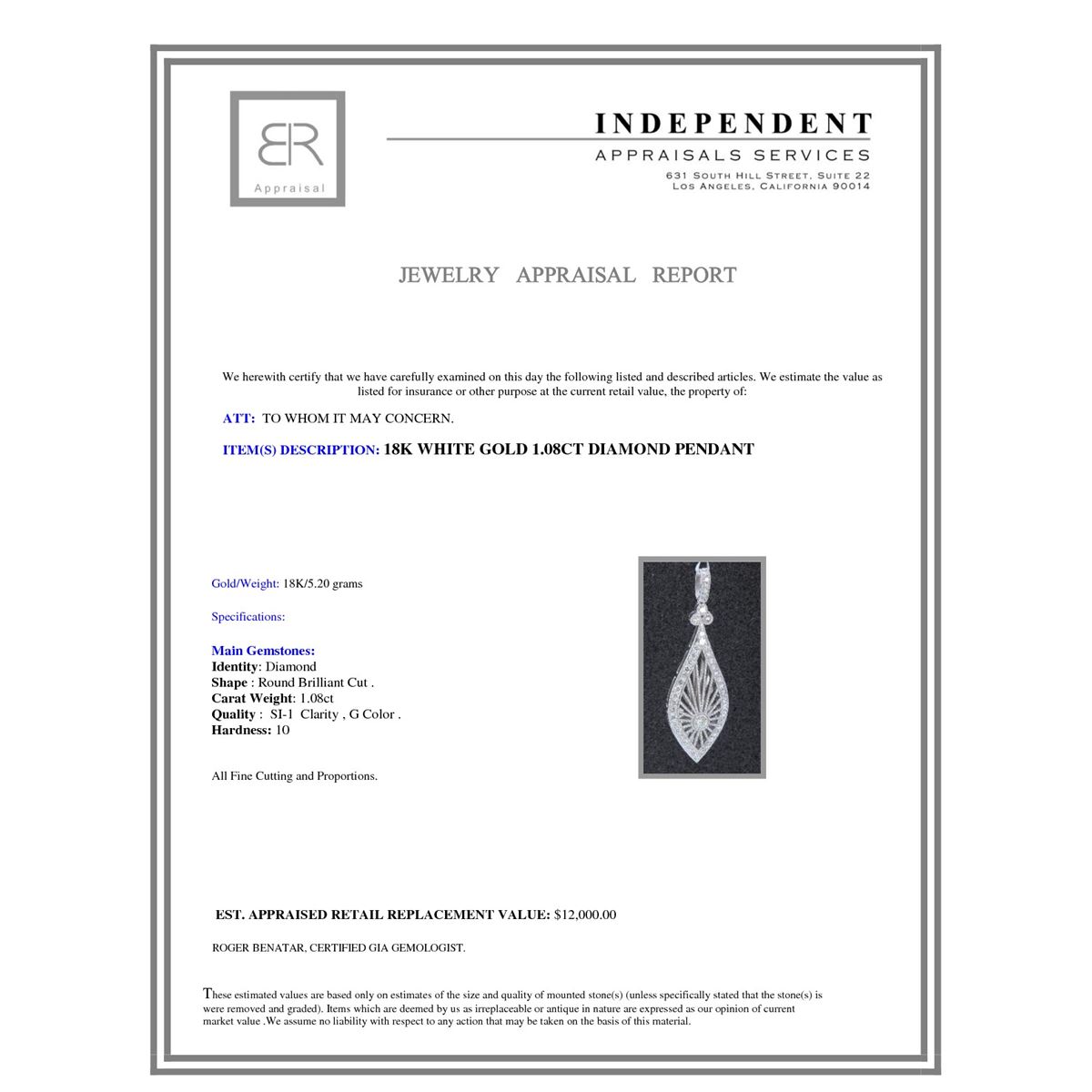18K WHITE GOLD DIAMOND PENDANT:5.20 GRAMS/DIAMOND:1.08CT/#R8007