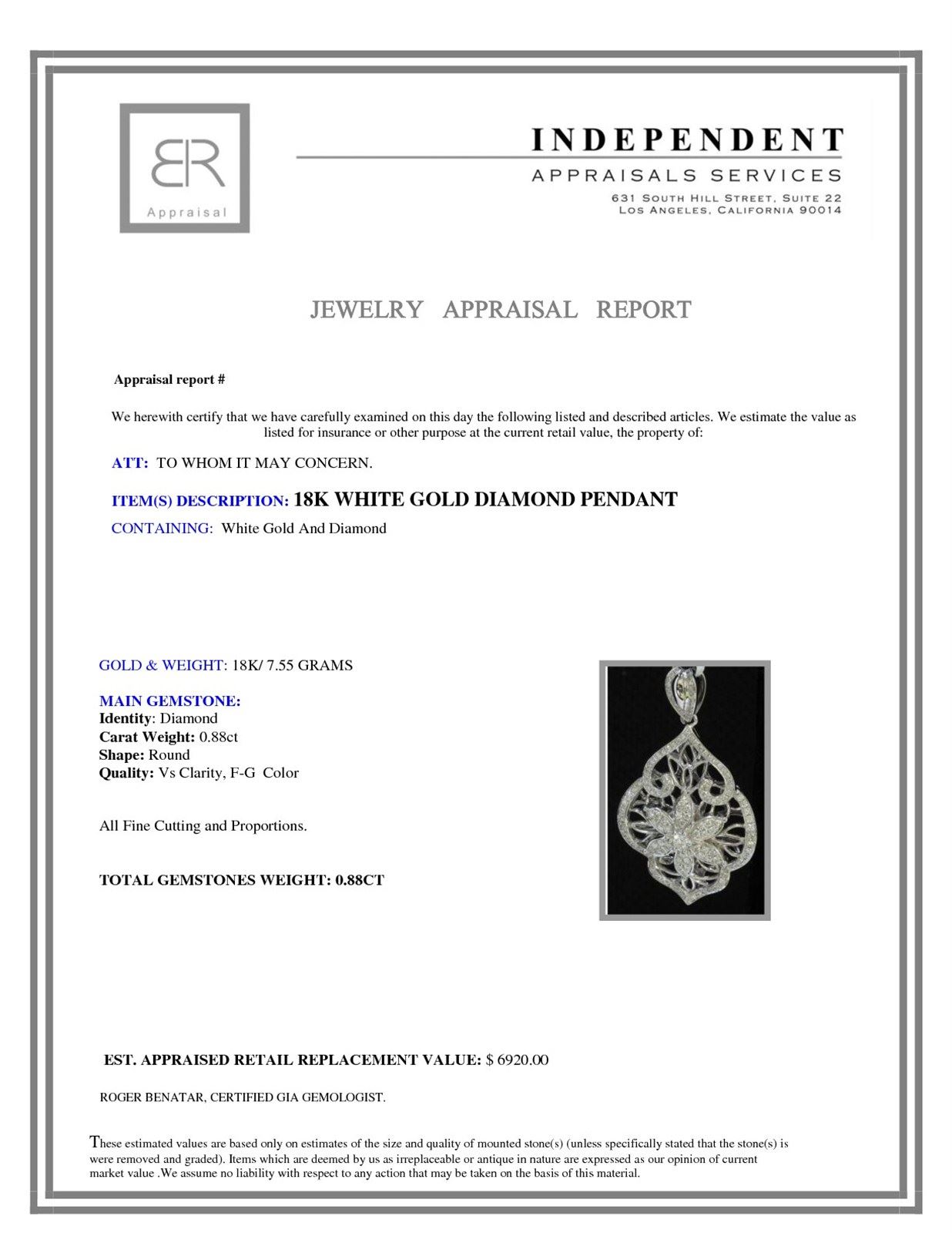 18K WHITE GOLD DIAMOND PENDANT:7.55 GRAMS/DIAMOND:0.88CT/#R8035