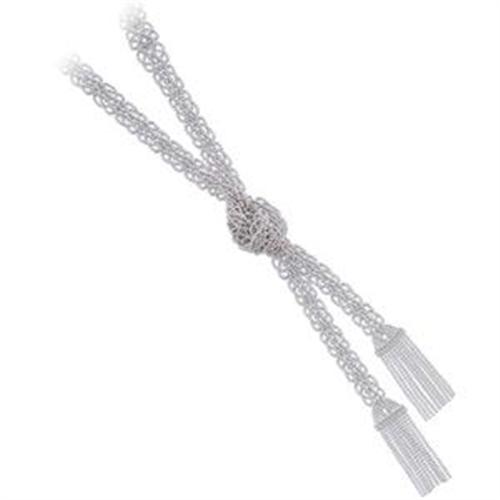 18k White Gold Beaded Chain Necklace with Tassell. This beautiful chain is 9mm wide and 40" long.