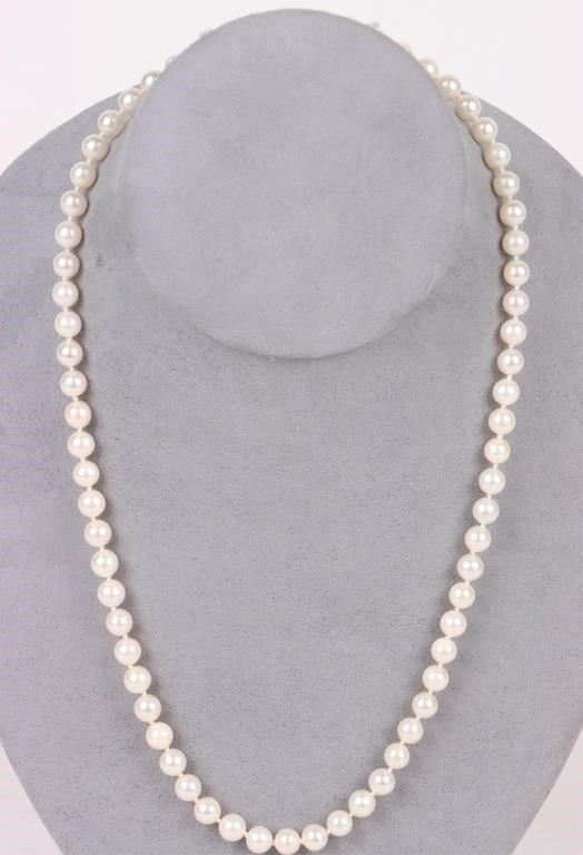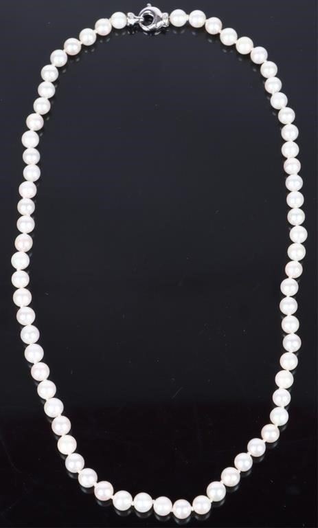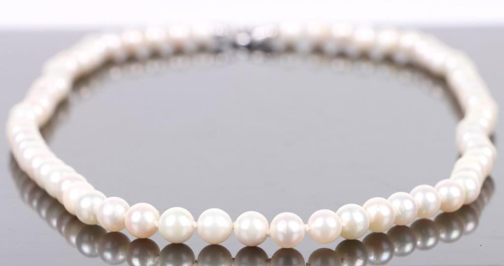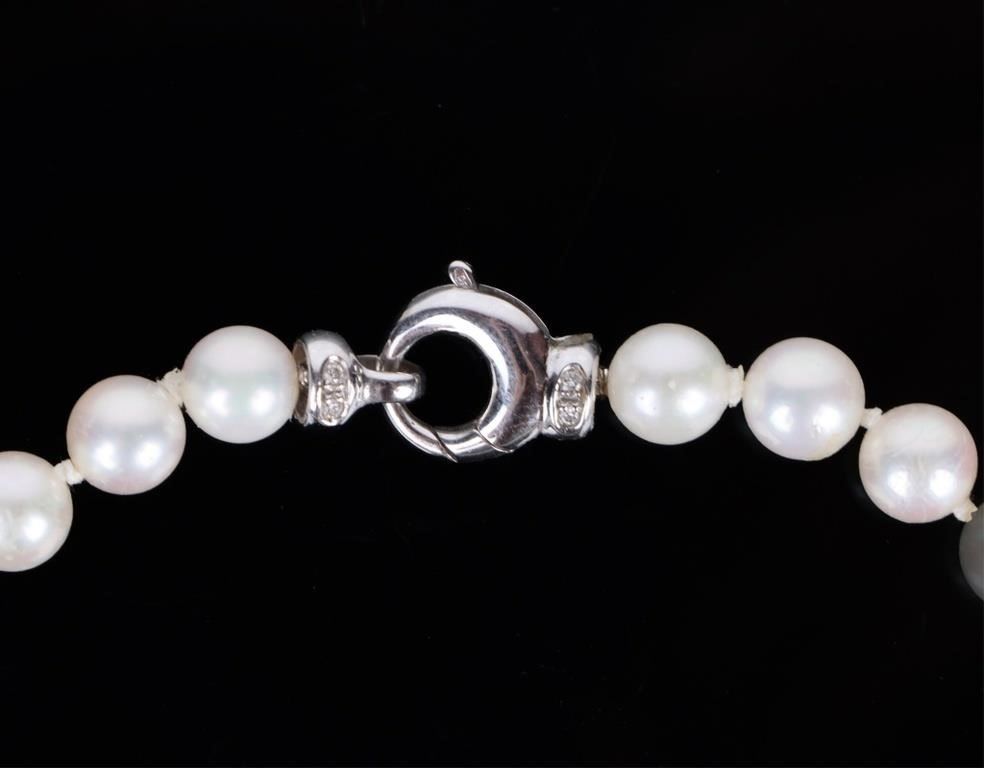 18K white gold pearl diamond ladies necklace to include eight 0.01ct round cut diamonds.