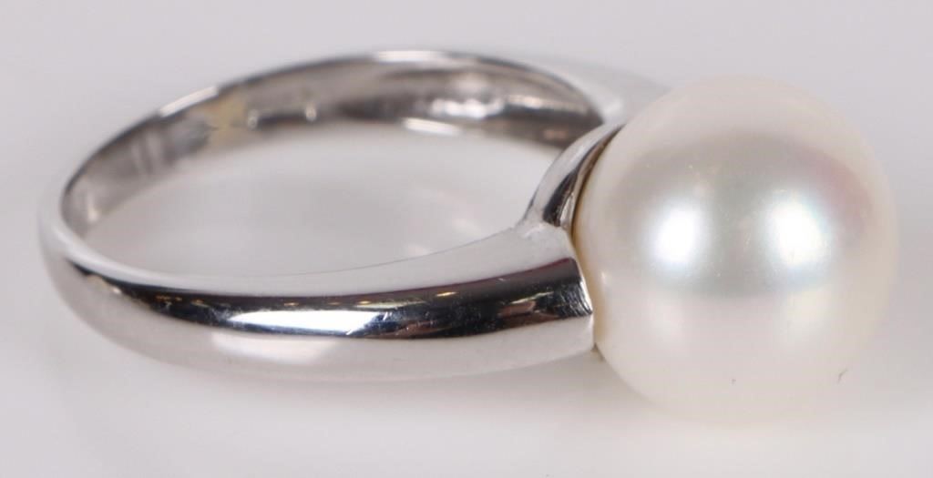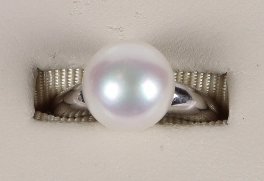 18K white gold pearl ladies ring to include one 5.0ct pearl headstone.