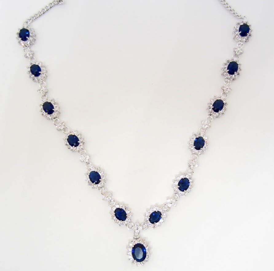 Necklace, earrings, ring and bracelet. Blue zirconia. Ring size 6. Bracelet measures approx 7-1/4" long