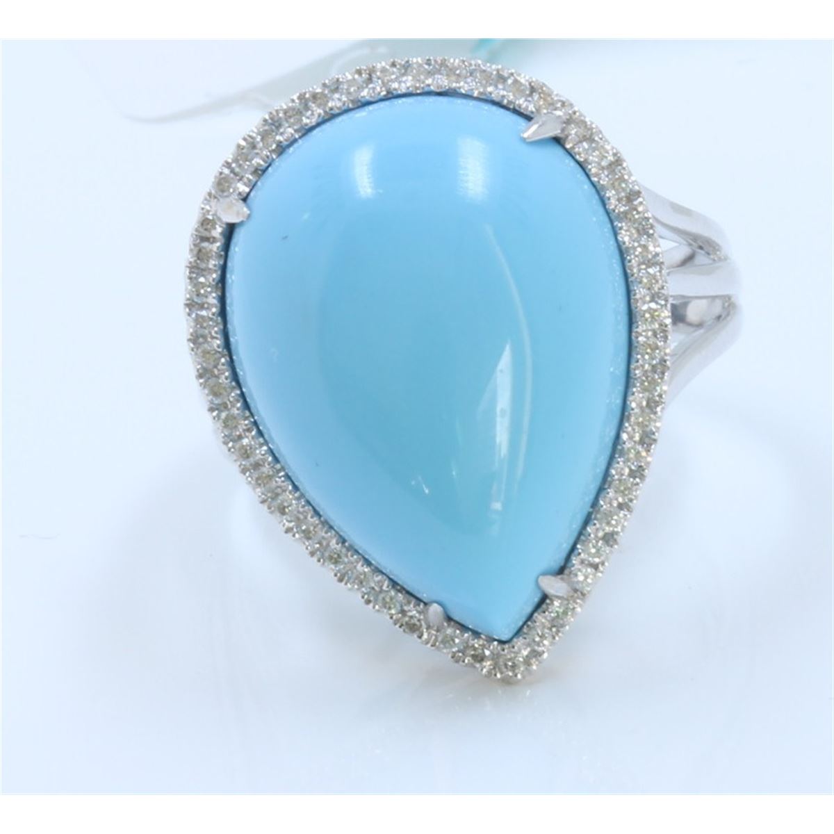 18K WHITE GOLD RING 6.36GRAM /DIAMOND 0.21CT/TURQUOISE PEAR SHAPE 15X20MM 13.00CT/#R8000