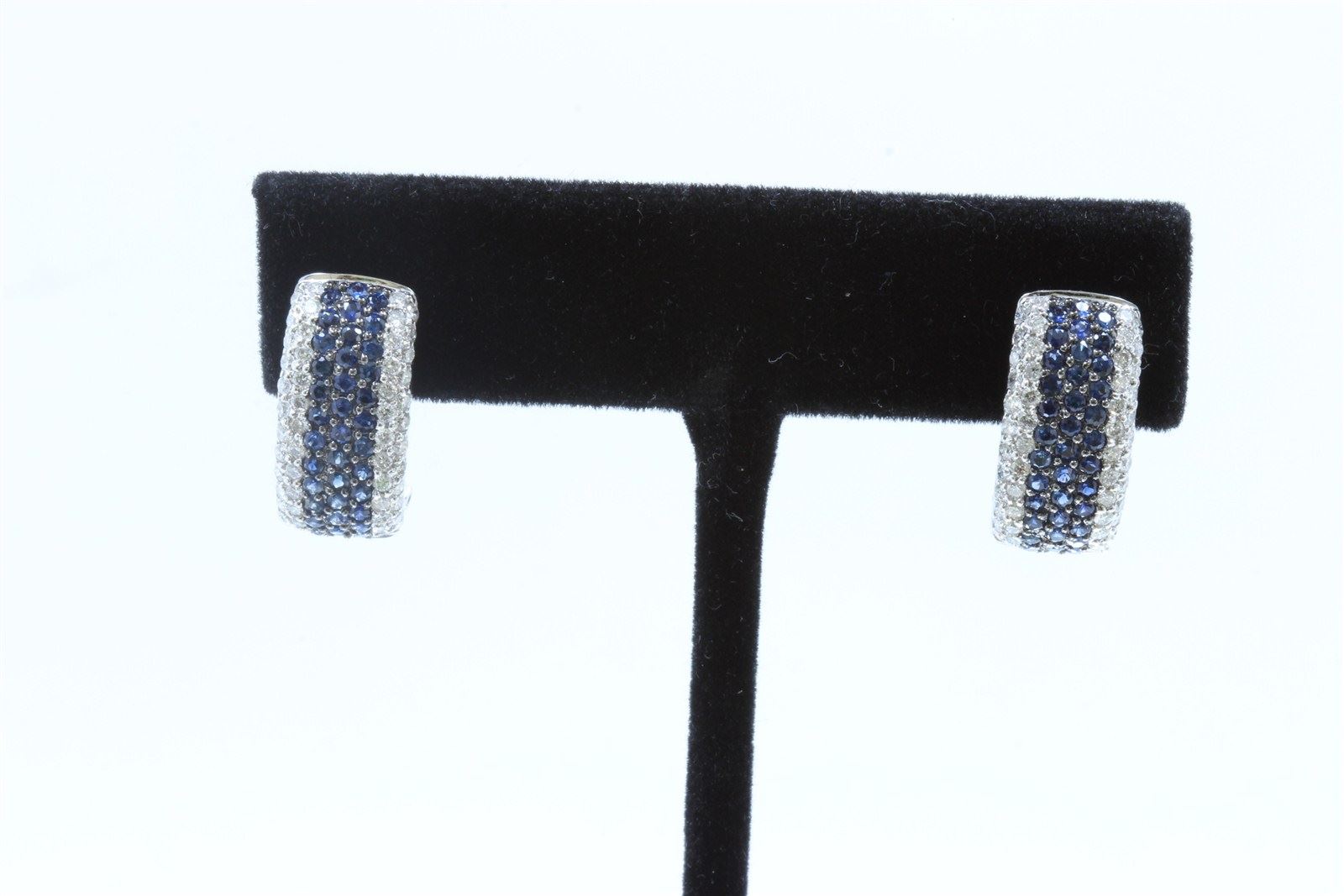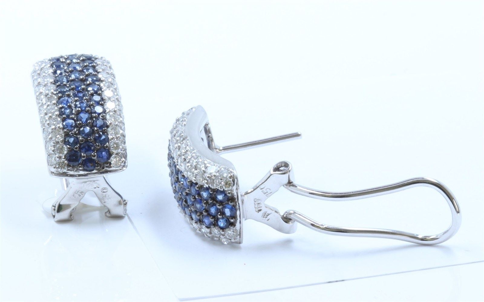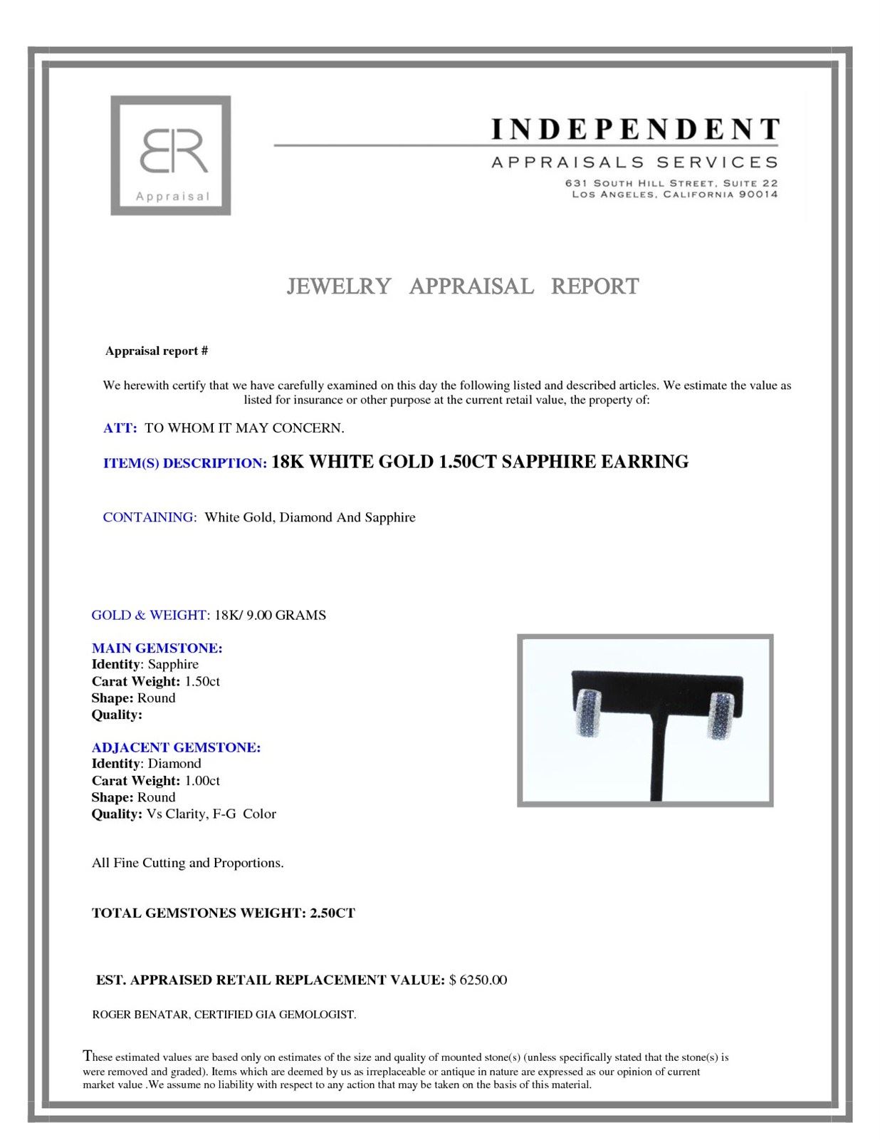 18K WHITE GOLD SAPPHIRE EARRING:9.00 GRAMS/DIAMOND:1.00 CT/SAPPHIRE:1.50CT/#R8037