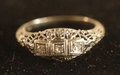 18K WHITE GOLD WEDDING RING, with 3 small diamonds,PACKING AND SHIPPING BY FAIRFIELD AUCTION WITHIN CONTINENTAL USA (excluding insurance) $20- we will discount for combined shipping on multiple lots,