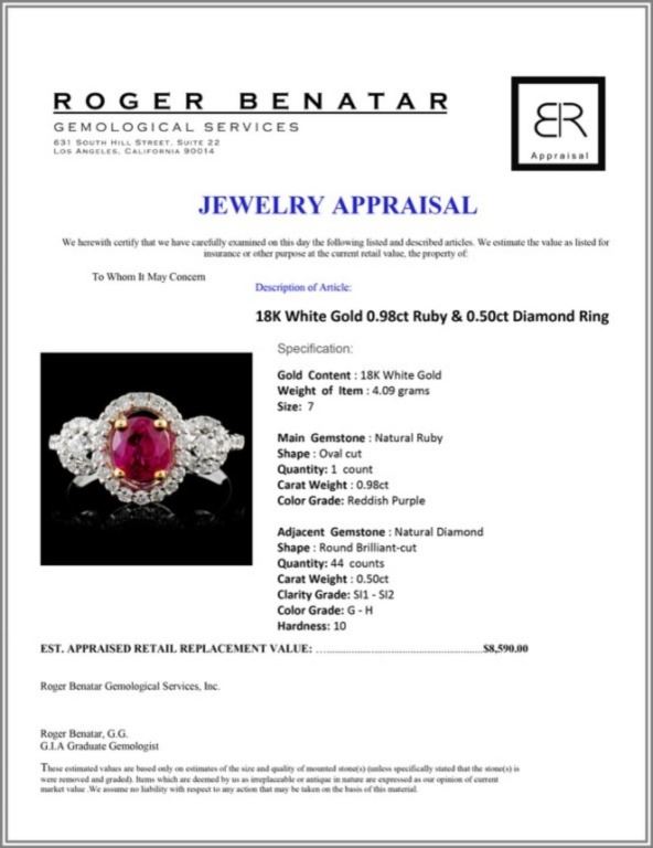 Regarding Appraised Jewelry and Loose Stones - Auctionfarm sends them out to a third party for Retail Replacement Value Appraisals, which are the most common. These types of evaluations are written for insurance needs. This would be the cost to replace the jewelry with an item of equal quality and kind, considered to be the current market price or the replacement value. This type of appraisal is done to protect you in the event of damage or loss of a valuable item. Our appraisals are conducted by independent 3rd Party appraisal firms that utilizes Certified GIA Gemologist. Appraisals should be used for verification of gemstone and/or metal weight, size, and grade only, not actual value. Appraisal value should be considered for insurance purposes only, not actual value, as price varies greatly from retail locations thru out the world. Items should not be purchased with the expectation to resell for appraisal price, or for profit.