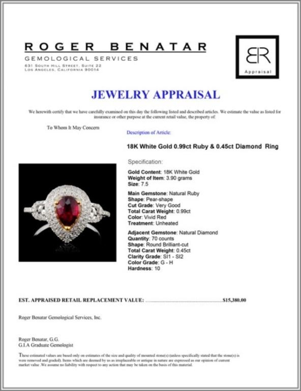 Regarding Appraised Jewelry and Loose Stones - Auctionfarm sends them out to a third party for Retail Replacement Value Appraisals, which are the most common. These types of evaluations are written for insurance needs. This would be the cost to replace the jewelry with an item of equal quality and kind, considered to be the current market price or the replacement value. This type of appraisal is done to protect you in the event of damage or loss of a valuable item. Our appraisals are conducted by independent 3rd Party appraisal firms that utilizes Certified GIA Gemologist. Appraisals should be used for verification of gemstone and/or metal weight, size, and grade only, not actual value. Appraisal value should be considered for insurance purposes only, not actual value, as price varies greatly from retail locations thru out the world. Items should not be purchased with the expectation to resell for appraisal price, or for profit.