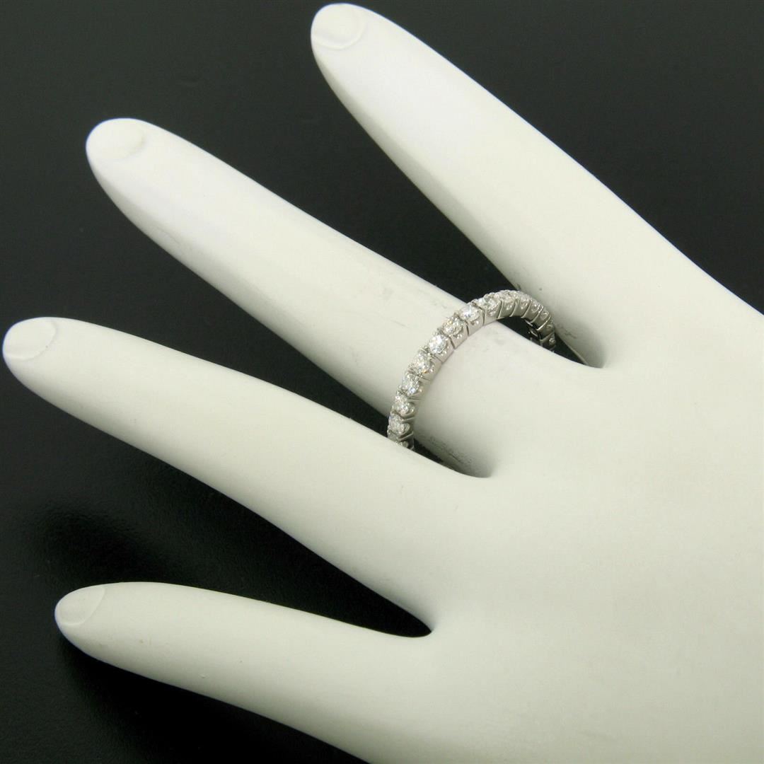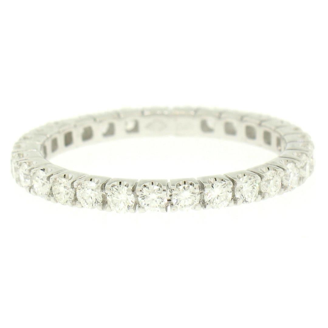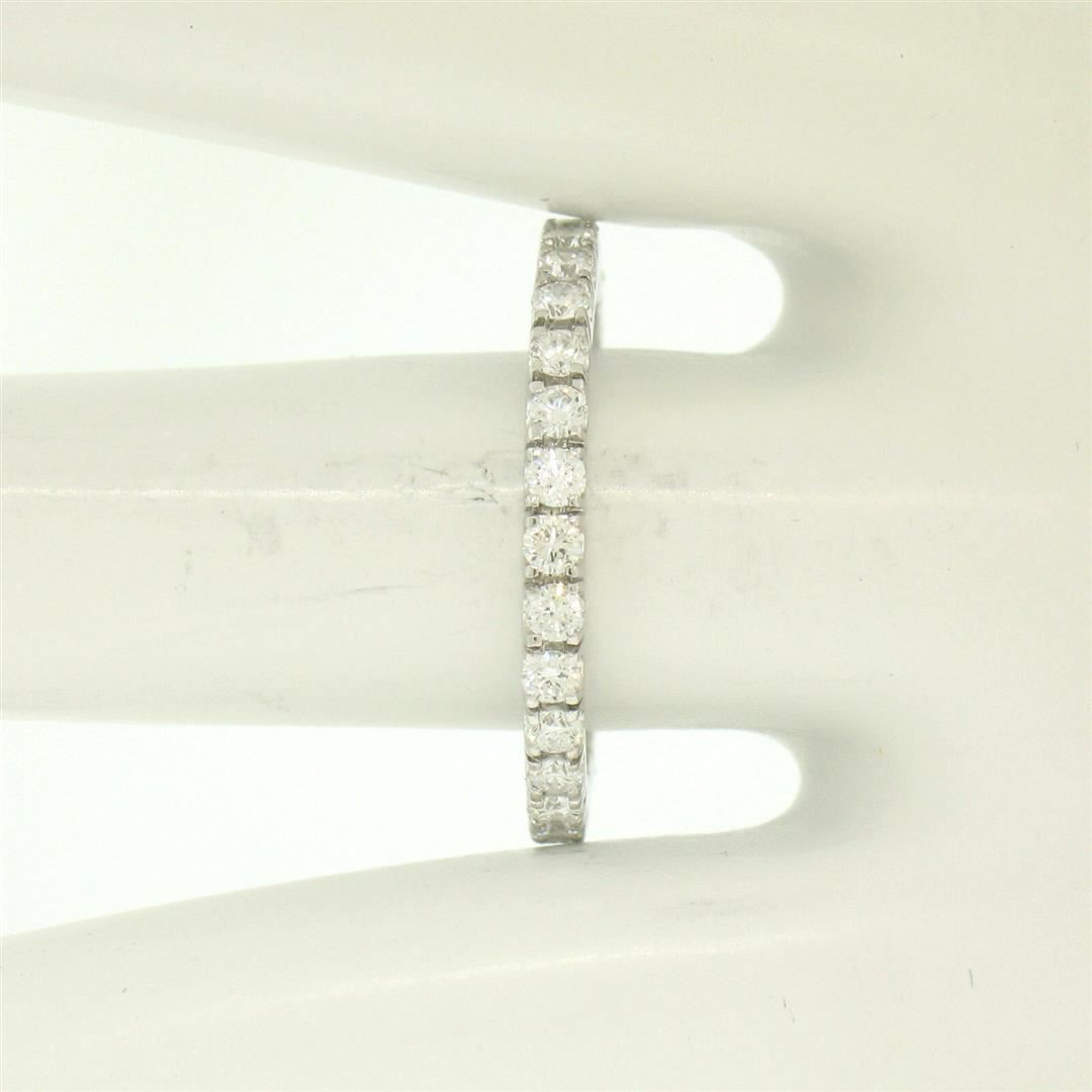 One 18K White Gold 1.0ctw F VS1 Round Brilliant Prong Set Diamond Eternity Band Ring. Item Details: Material: 18k Solid White Gold, Weight: 2.5 Grams, Stone(s): (29) Natural Genuine Diamonds - Round Brilliant Cut - Prong Set - F/G Color - VS1 Clarity, Total Carat Weight: 1.00 (approx.), Ring Size: 8.0 (We can not custom size this ring.), Ring Width: 2.2mm, Ring Height: 2.2mm rise off the finger, Condition: Like New!