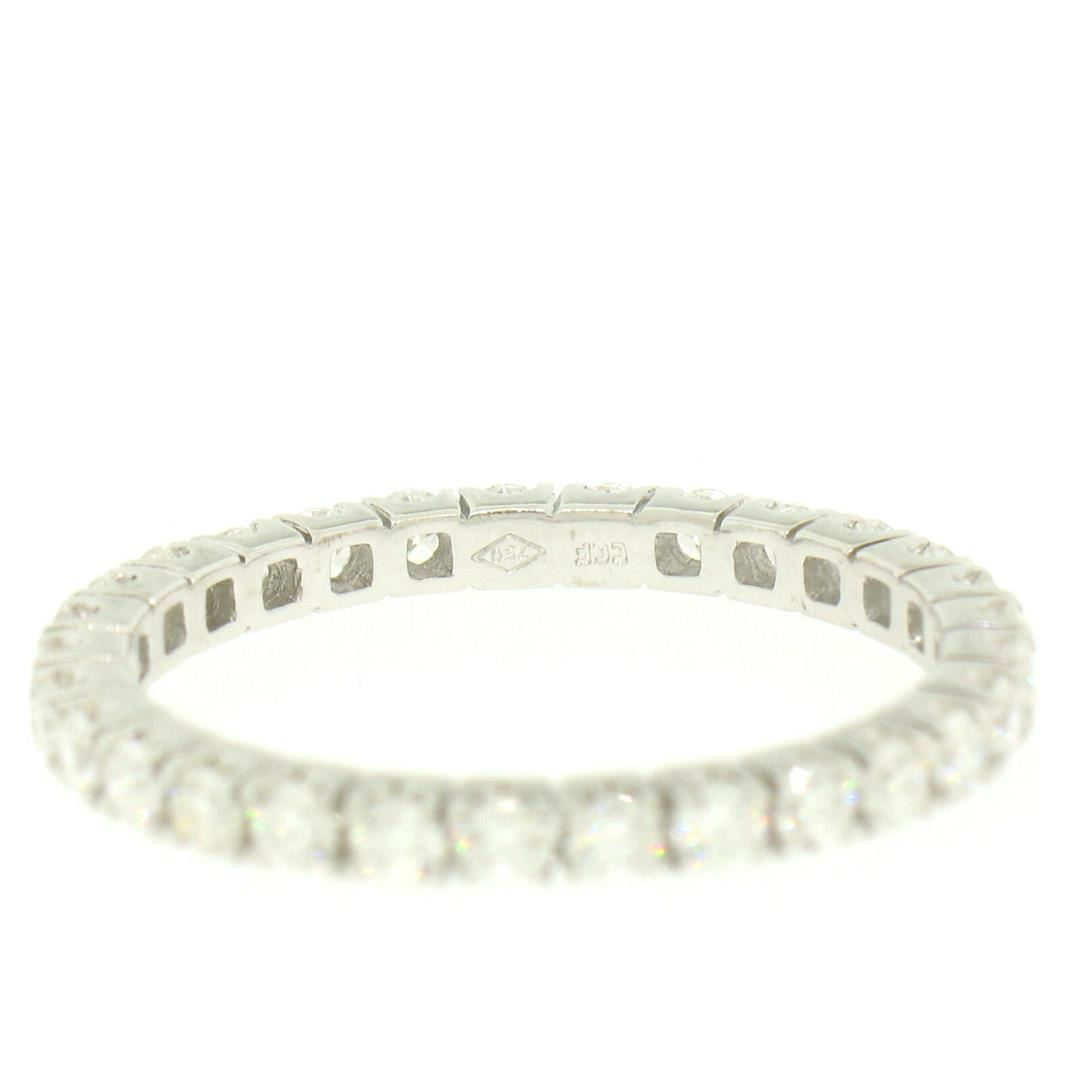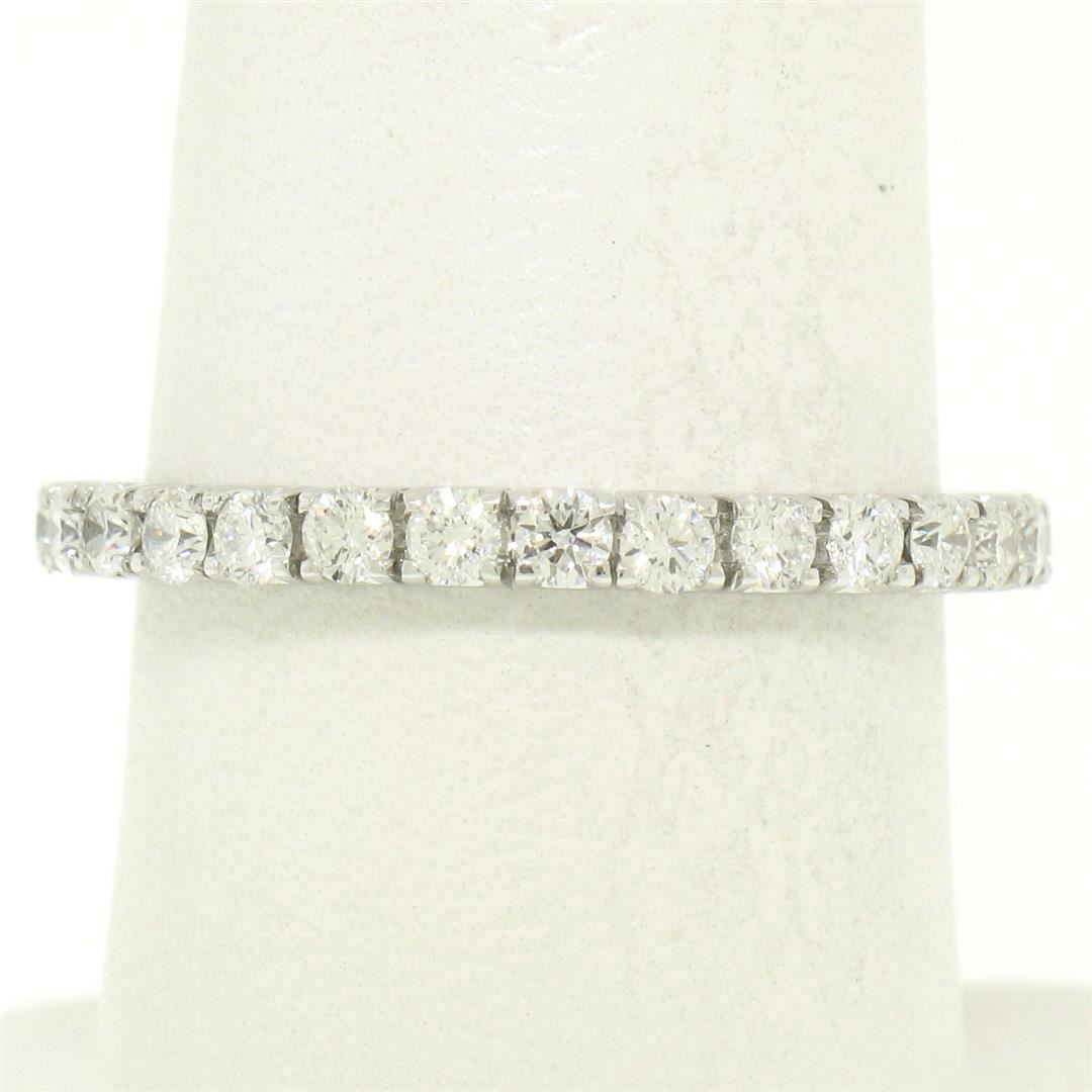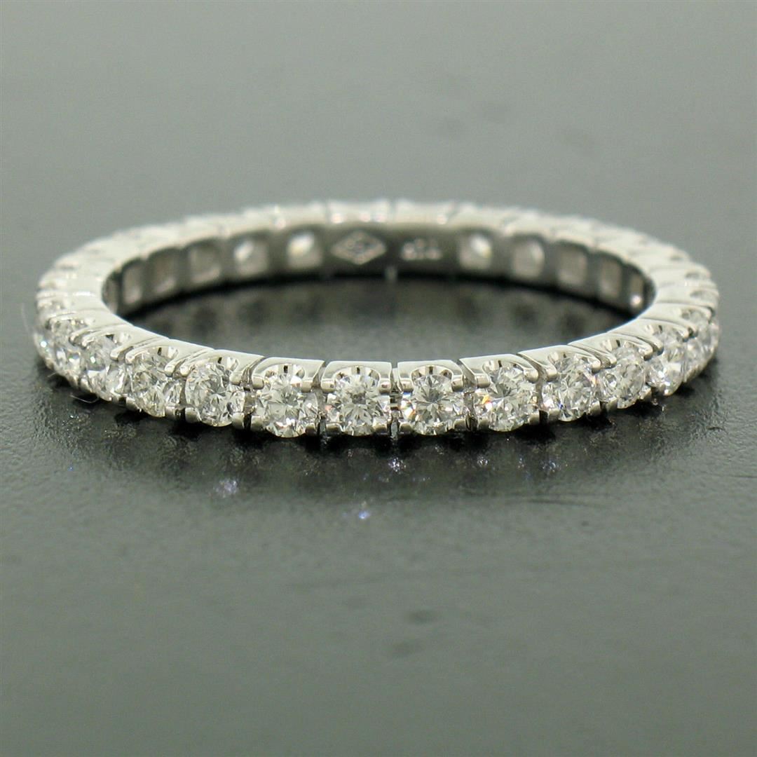 One 18K White Gold 1.0ctw F VS1 Round Brilliant Prong Set Diamond Eternity Band Ring. Item Details: Material: 18k Solid White Gold, Weight: 2.5 Grams, Stone(s): (29) Natural Genuine Diamonds - Round Brilliant Cut - Prong Set - F/G Color - VS1 Clarity, Total Carat Weight: 1.00 (approx.), Ring Size: 8.0 (We can not custom size this ring.), Ring Width: 2.2mm, Ring Height: 2.2mm rise off the finger, Condition: Like New!