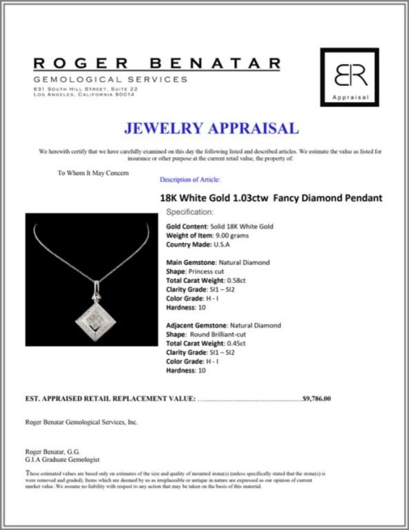 Regarding Appraised Jewelry and Loose Stones - Auctionfarm sends them out to a third party for Retail Replacement Value Appraisals, which are the most common. These types of evaluations are written for insurance needs. This would be the cost to replace the jewelry with an item of equal quality and kind, considered to be the current market price or the replacement value. This type of appraisal is done to protect you in the event of damage or loss of a valuable item. Our appraisals are conducted by independent 3rd Party appraisal firms that utilizes Certified GIA Gemologist. Appraisals should be used for verification of gemstone and/or metal weight, size, and grade only, not actual value. Appraisal value should be considered for insurance purposes only, not actual value, as price varies greatly from retail locations thru out the world. Items should not be purchased with the expectation to resell for appraisal price, or for profit.