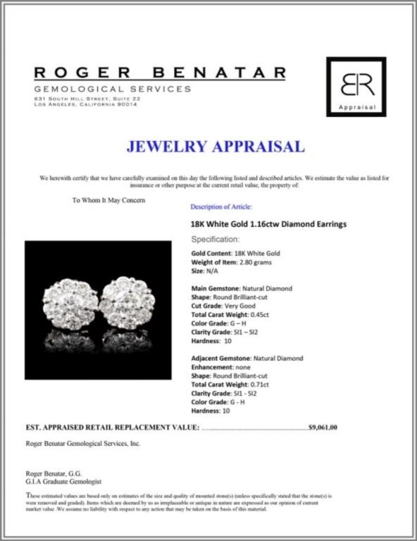 Regarding Appraised Jewelry and Loose Stones - Auctionfarm sends them out to a third party for Retail Replacement Value Appraisals, which are the most common. These types of evaluations are written for insurance needs. This would be the cost to replace the jewelry with an item of equal quality and kind, considered to be the current market price or the replacement value. This type of appraisal is done to protect you in the event of damage or loss of a valuable item. Our appraisals are conducted by independent 3rd Party appraisal firms that utilizes Certified GIA Gemologist. Appraisals should be used for verification of gemstone and/or metal weight, size, and grade only, not actual value. Appraisal value should be considered for insurance purposes only, not actual value, as price varies greatly from retail locations thru out the world. Items should not be purchased with the expectation to resell for appraisal price, or for profit.