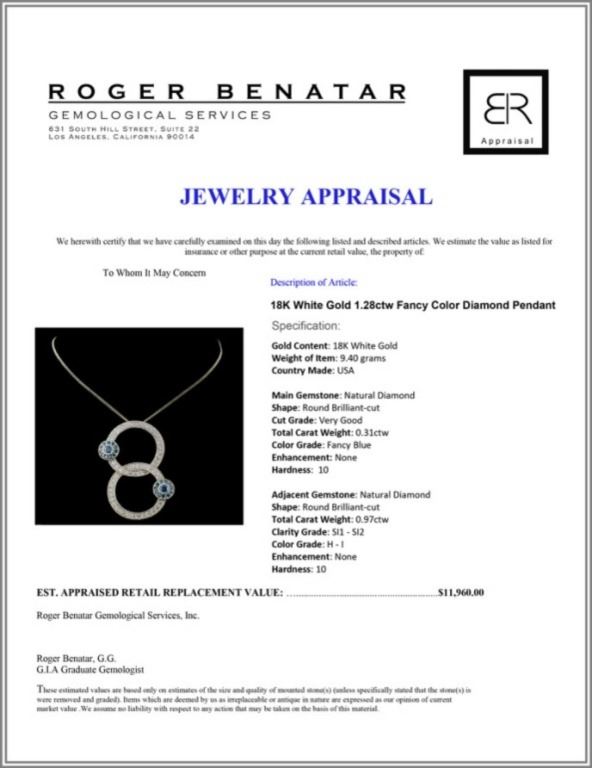 Regarding Appraised Jewelry and Loose Stones - Auctionfarm sends them out to a third party for Retail Replacement Value Appraisals, which are the most common. These types of evaluations are written for insurance needs. This would be the cost to replace the jewelry with an item of equal quality and kind, considered to be the current market price or the replacement value. This type of appraisal is done to protect you in the event of damage or loss of a valuable item. Our appraisals are conducted by independent 3rd Party appraisal firms that utilizes Certified GIA Gemologist. Appraisals should be used for verification of gemstone and/or metal weight, size, and grade only, not actual value. Appraisal value should be considered for insurance purposes only, not actual value, as price varies greatly from retail locations thru out the world. Items should not be purchased with the expectation to resell for appraisal price, or for profit.