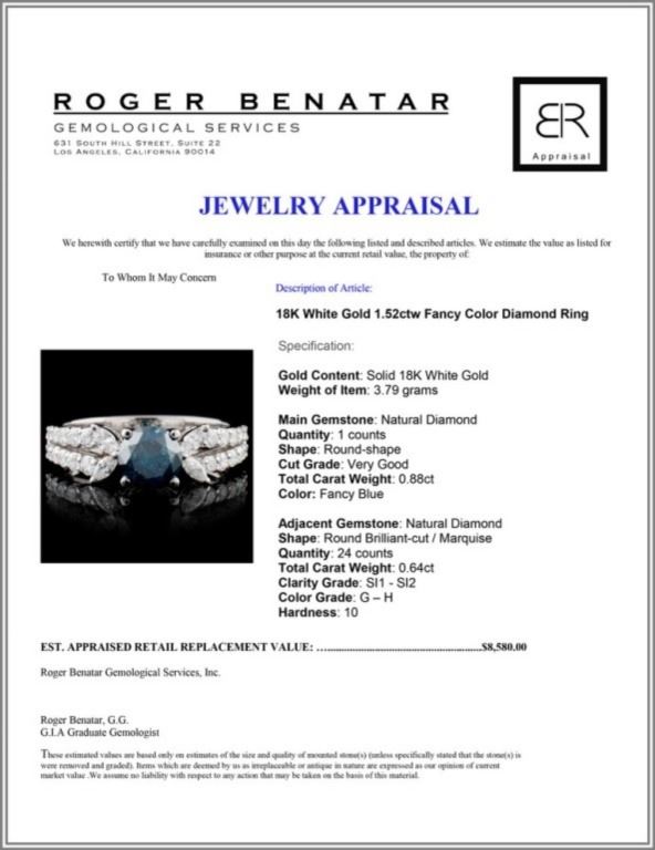 Regarding Appraised Jewelry and Loose Stones - Auctionfarm sends them out to a third party for Retail Replacement Value Appraisals, which are the most common. These types of evaluations are written for insurance needs. This would be the cost to replace the jewelry with an item of equal quality and kind, considered to be the current market price or the replacement value. This type of appraisal is done to protect you in the event of damage or loss of a valuable item. Our appraisals are conducted by independent 3rd Party appraisal firms that utilizes Certified GIA Gemologist. Appraisals should be used for verification of gemstone and/or metal weight, size, and grade only, not actual value. Appraisal value should be considered for insurance purposes only, not actual value, as price varies greatly from retail locations thru out the world. Items should not be purchased with the expectation to resell for appraisal price, or for profit.