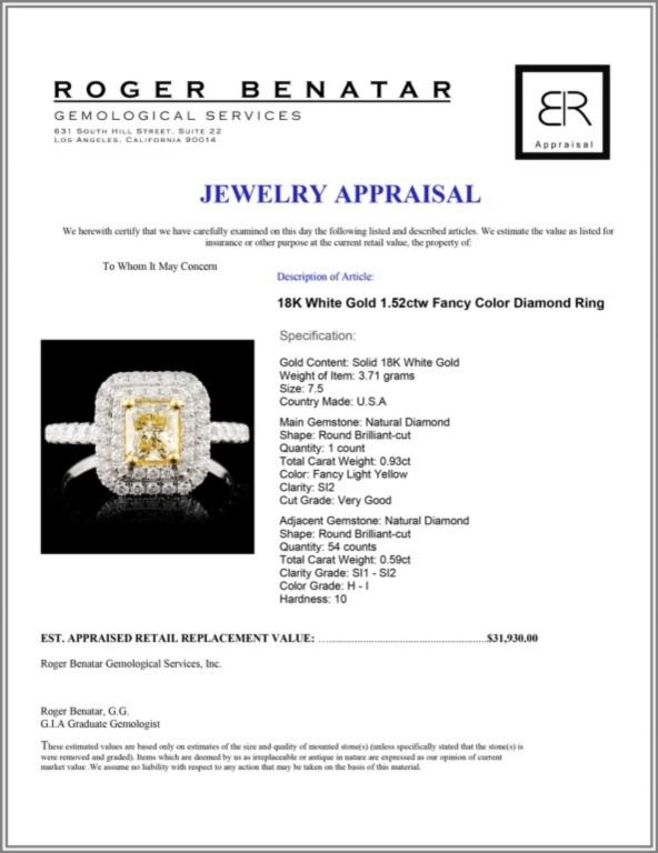 Regarding Appraised Jewelry and Loose Stones - Auctionfarm sends them out to a third party for Retail Replacement Value Appraisals, which are the most common. These types of evaluations are written for insurance needs. This would be the cost to replace the jewelry with an item of equal quality and kind, considered to be the current market price or the replacement value. This type of appraisal is done to protect you in the event of damage or loss of a valuable item. Our appraisals are conducted by independent 3rd Party appraisal firms that utilizes Certified GIA Gemologist. Appraisals should be used for verification of gemstone and/or metal weight, size, and grade only, not actual value. Appraisal value should be considered for insurance purposes only, not actual value, as price varies greatly from retail locations thru out the world. Items should not be purchased with the expectation to resell for appraisal price, or for profit.