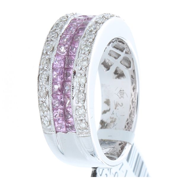 18K White Gold 1.54ctw Pink Sapphire & Diamond Ring **|**|** 18K White Gold 1.54ctw Pink Sapphire & Diamond Ring --- 26 Diamonds @0.3CT --- 30 Pink Sapphire @1.24CT --- Metal: 18K White Gold --- SKU#288347 *** ; MSRP: $4600