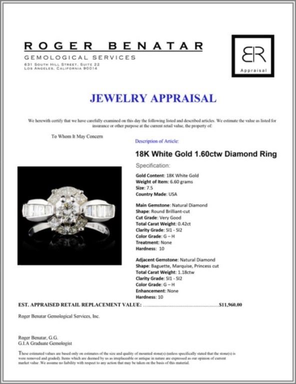 Regarding Appraised Jewelry and Loose Stones - Auctionfarm sends them out to a third party for Retail Replacement Value Appraisals, which are the most common. These types of evaluations are written for insurance needs. This would be the cost to replace the jewelry with an item of equal quality and kind, considered to be the current market price or the replacement value. This type of appraisal is done to protect you in the event of damage or loss of a valuable item. Our appraisals are conducted by independent 3rd Party appraisal firms that utilizes Certified GIA Gemologist. Appraisals should be used for verification of gemstone and/or metal weight, size, and grade only, not actual value. Appraisal value should be considered for insurance purposes only, not actual value, as price varies greatly from retail locations thru out the world. Items should not be purchased with the expectation to resell for appraisal price, or for profit.