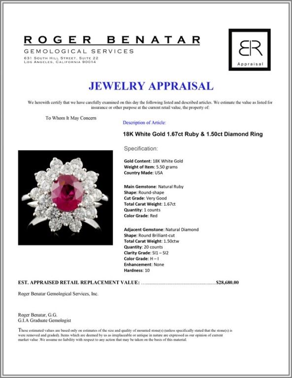 Total Carat Weight: 1.67ct