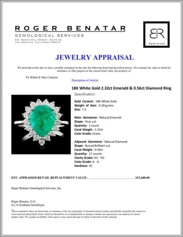 Regarding Appraised Jewelry and Loose Stones - Auctionfarm sends them out to a third party for Retail Replacement Value Appraisals, which are the most common. These types of evaluations are written for insurance needs. This would be the cost to replace the jewelry with an item of equal quality and kind, considered to be the current market price or the replacement value. This type of appraisal is done to protect you in the event of damage or loss of a valuable item. Our appraisals are conducted by independent 3rd Party appraisal firms that utilizes Certified GIA Gemologist. Appraisals should be used for verification of gemstone and/or metal weight, size, and grade only, not actual value. Appraisal value should be considered for insurance purposes only, not actual value, as price varies greatly from retail locations thru out the world. Items should not be purchased with the expectation to resell for appraisal price, or for profit.