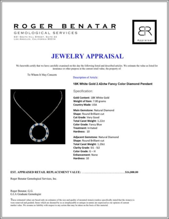 Regarding Appraised Jewelry and Loose Stones - Auctionfarm sends them out to a third party for Retail Replacement Value Appraisals, which are the most common. These types of evaluations are written for insurance needs. This would be the cost to replace the jewelry with an item of equal quality and kind, considered to be the current market price or the replacement value. This type of appraisal is done to protect you in the event of damage or loss of a valuable item. Our appraisals are conducted by independent 3rd Party appraisal firms that utilizes Certified GIA Gemologist. Appraisals should be used for verification of gemstone and/or metal weight, size, and grade only, not actual value. Appraisal value should be considered for insurance purposes only, not actual value, as price varies greatly from retail locations thru out the world. Items should not be purchased with the expectation to resell for appraisal price, or for profit.