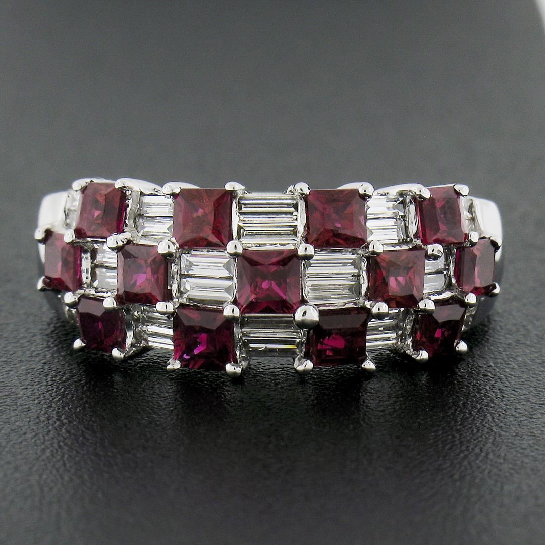 18K White Gold 2.65ctw Square Ruby & Baguette Diamond Checkerboard Cocktail Ring
