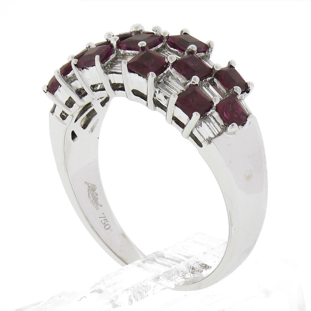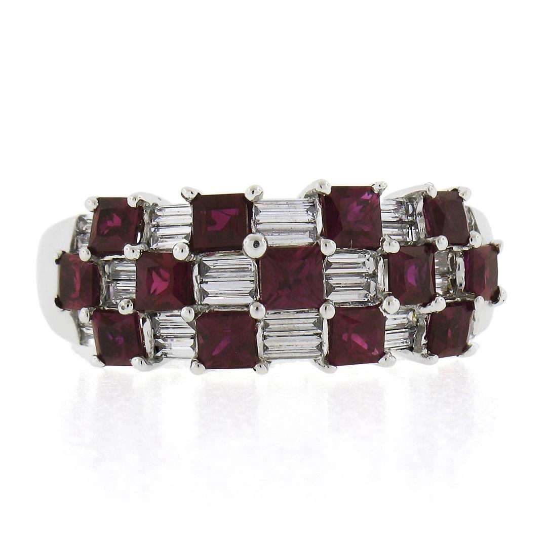 18K White Gold 2.65ctw Square Ruby & Baguette Diamond Checkerboard Cocktail Ring