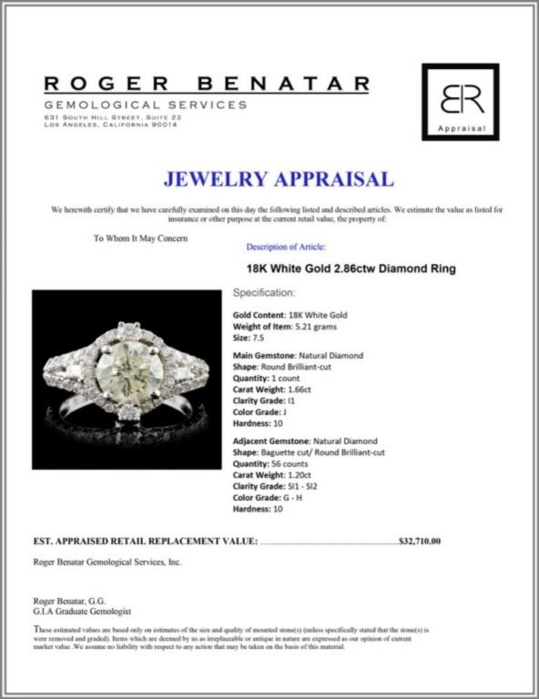 Regarding Appraised Jewelry and Loose Stones - Auctionfarm sends them out to a third party for Retail Replacement Value Appraisals, which are the most common. These types of evaluations are written for insurance needs. This would be the cost to replace the jewelry with an item of equal quality and kind, considered to be the current market price or the replacement value. This type of appraisal is done to protect you in the event of damage or loss of a valuable item. Our appraisals are conducted by independent 3rd Party appraisal firms that utilizes Certified GIA Gemologist. Appraisals should be used for verification of gemstone and/or metal weight, size, and grade only, not actual value. Appraisal value should be considered for insurance purposes only, not actual value, as price varies greatly from retail locations thru out the world. Items should not be purchased with the expectation to resell for appraisal price, or for profit.