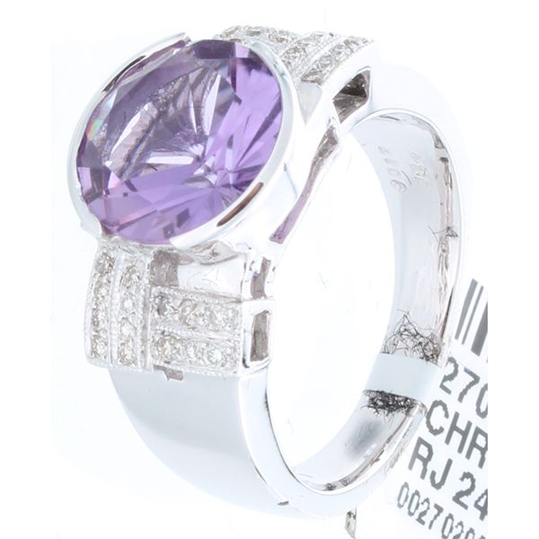 18K White Gold 2.94ctw Amethyst & Diamond Ring **|**|** 18K White Gold 2.94ctw Amethyst & Diamond Ring --- 28 Diamonds @0.17CT --- 1 Amethyst @2.77CT --- Metal weight: 8.41 grams --- Metal: 18K White Gold --- SKU#270200 *** ; MSRP: $5000