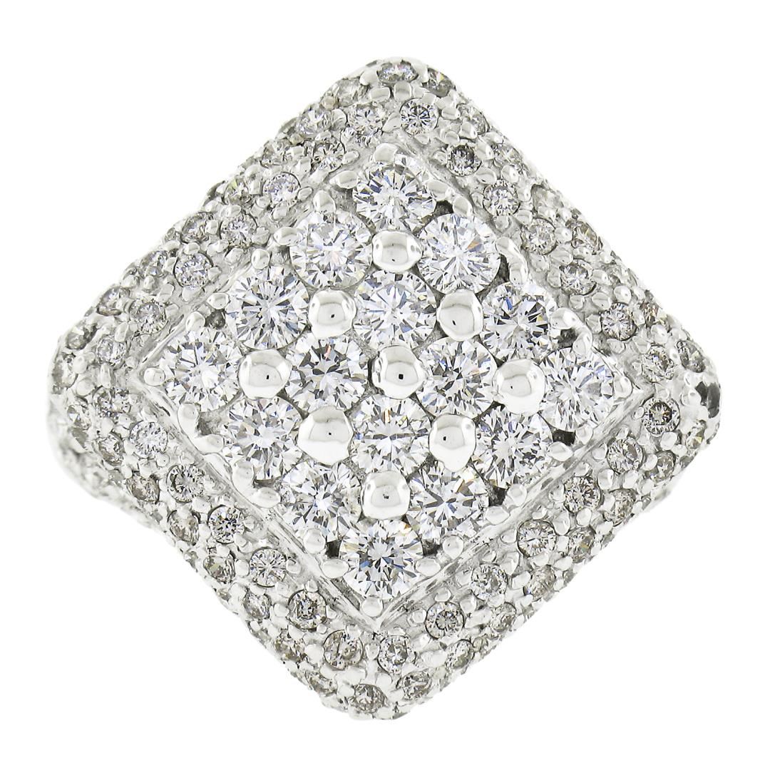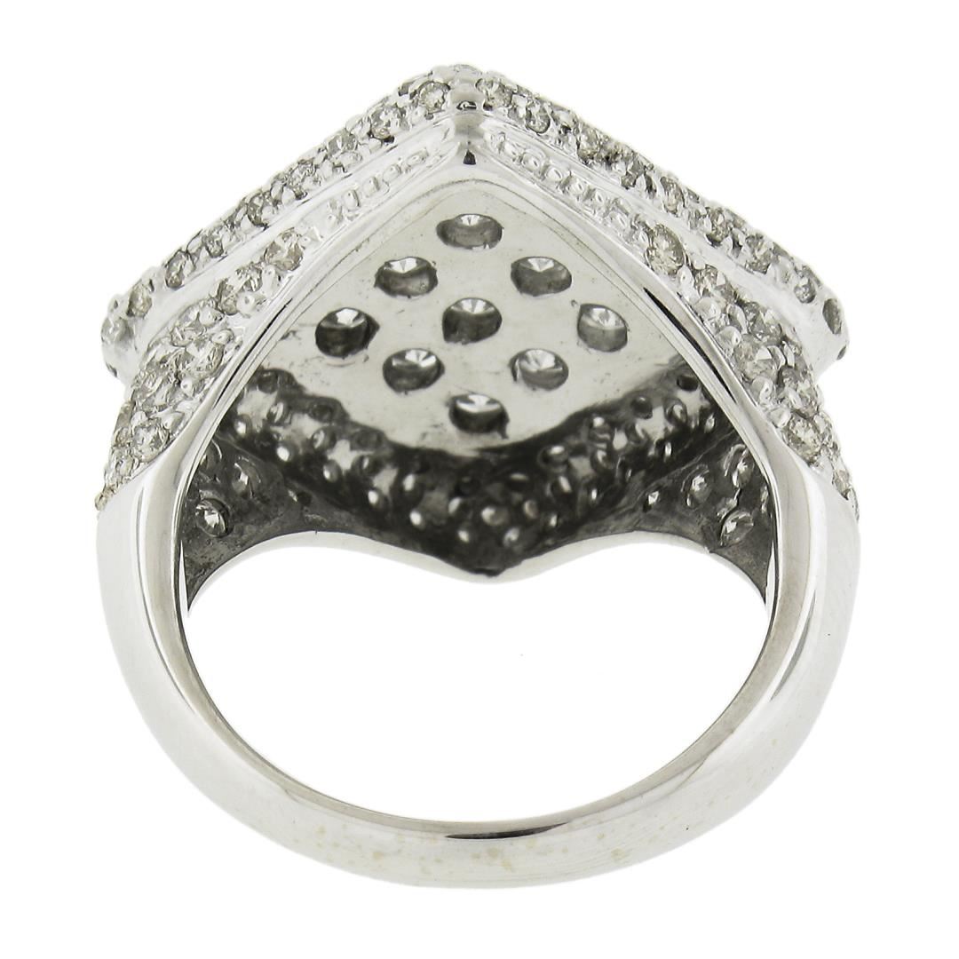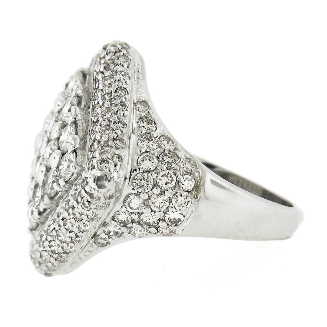 A solid 18k white gold platter ring, with numerous of round cut natural diamonds (G-I - VS2-SI2 ; 3.08ctw). The ring is size 7.5, weighs a total of 10.05 grams, and measures 22.6mm wide.