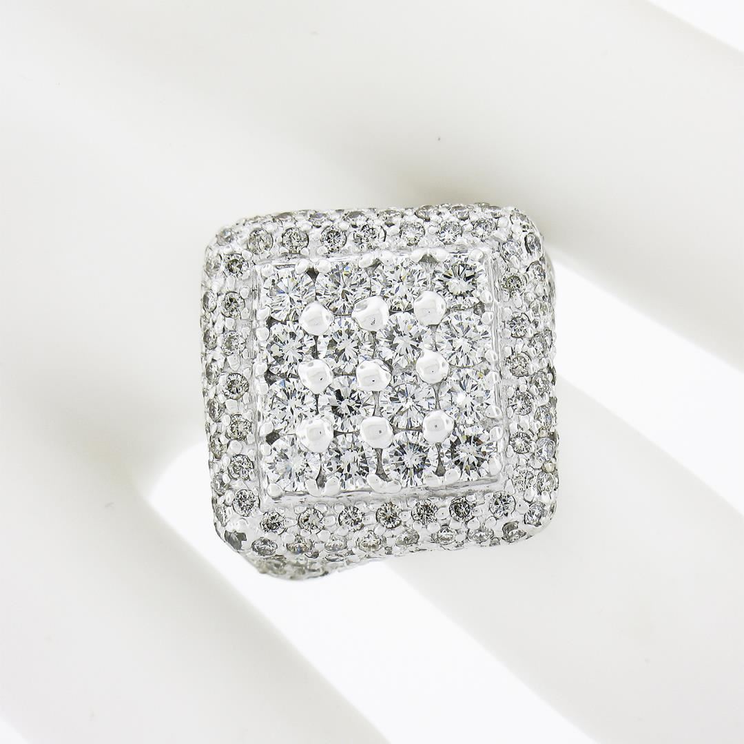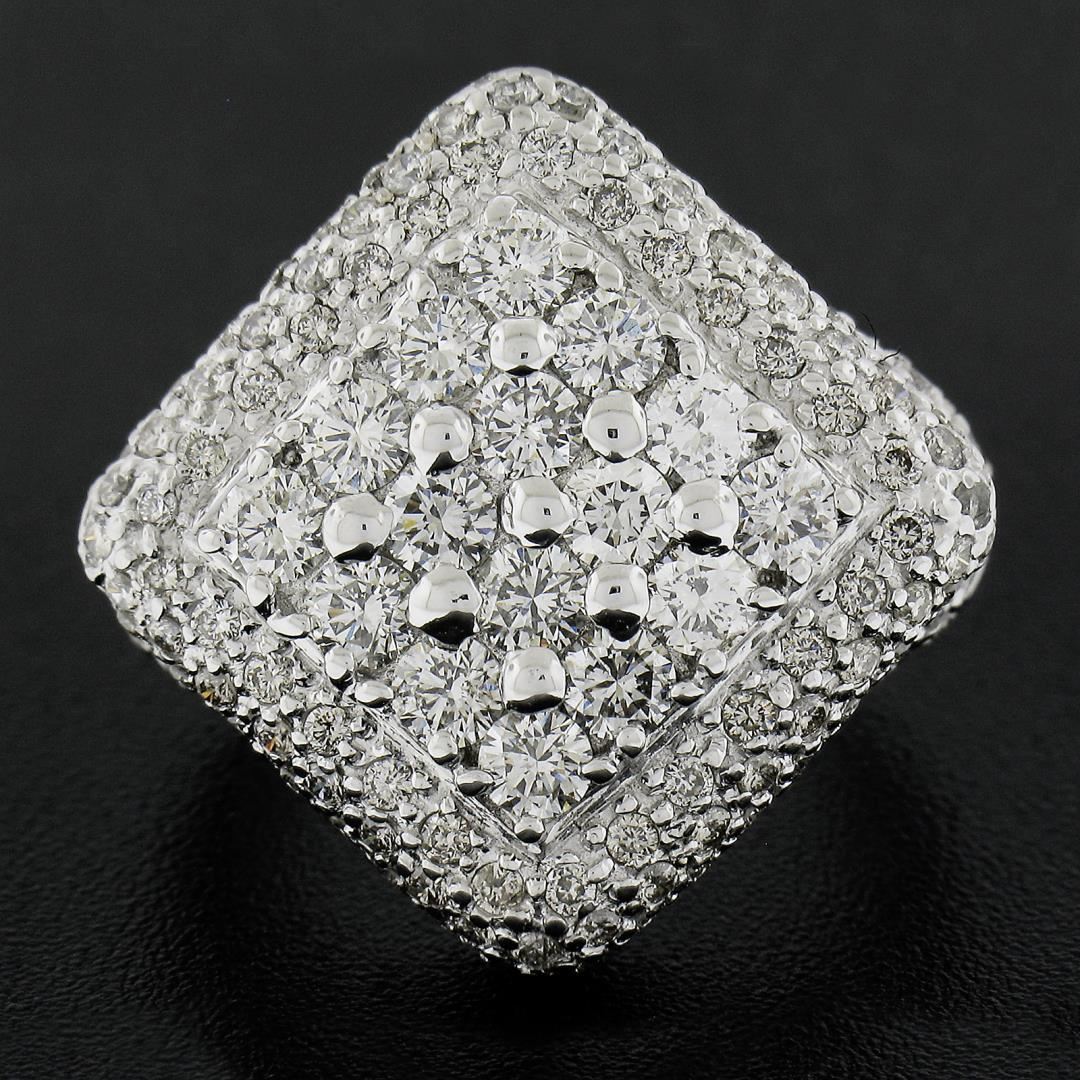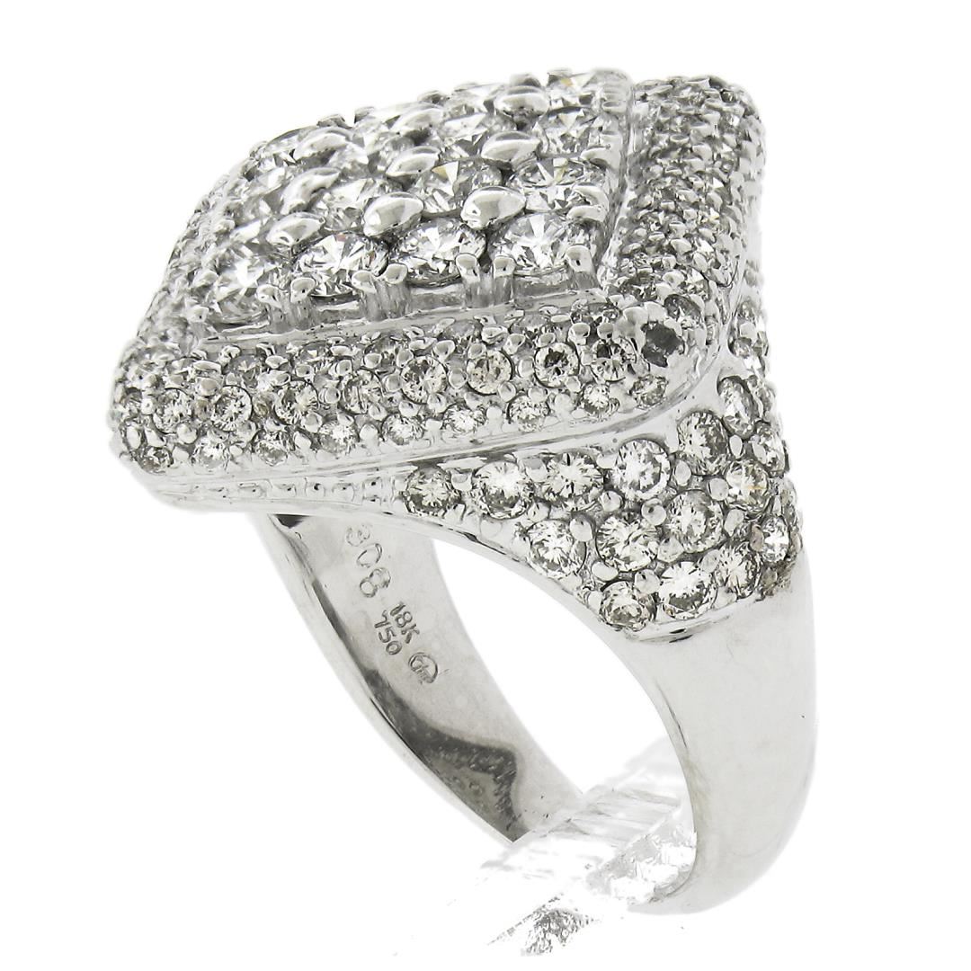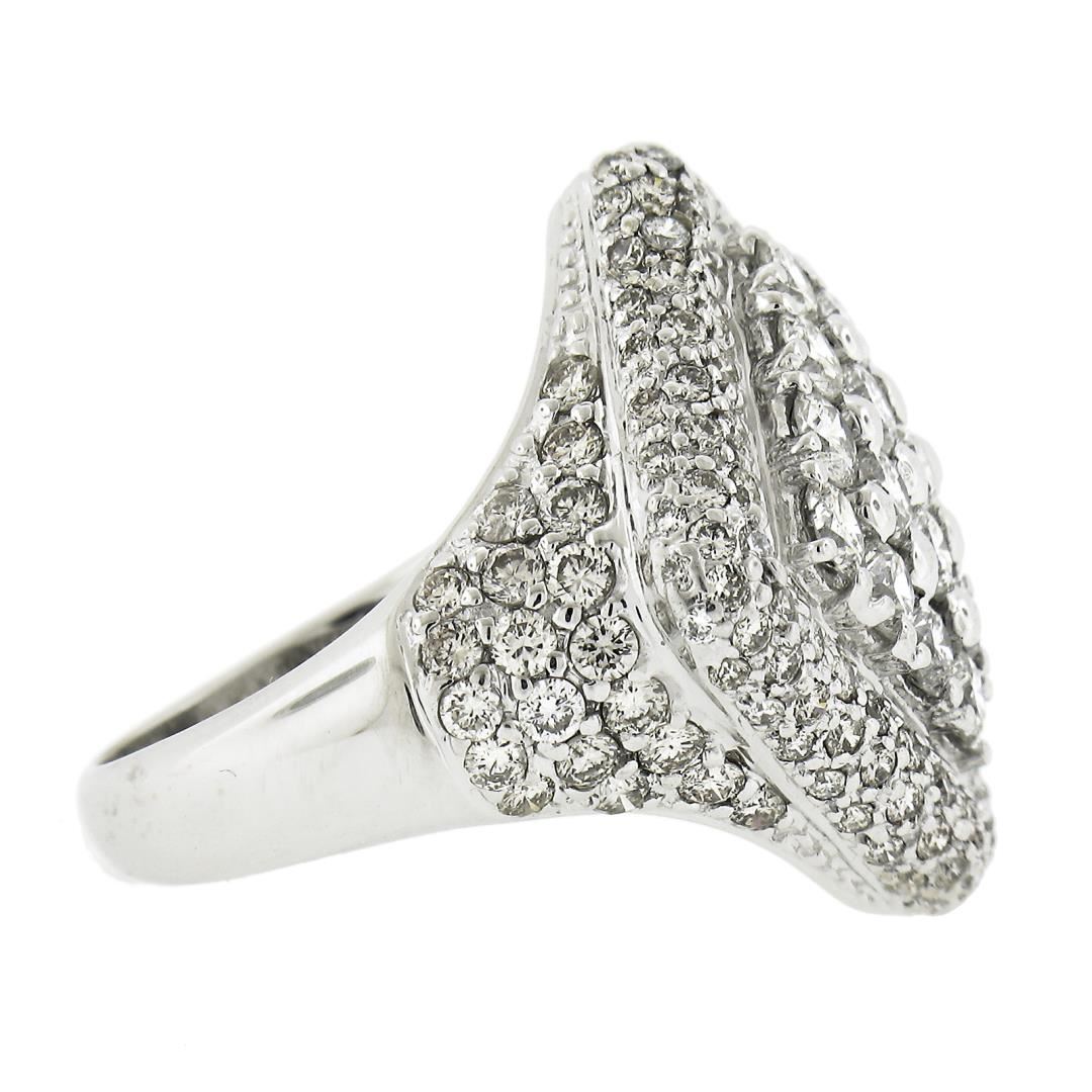 A solid 18k white gold platter ring, with numerous of round cut natural diamonds (G-I - VS2-SI2 ; 3.08ctw). The ring is size 7.5, weighs a total of 10.05 grams, and measures 22.6mm wide.