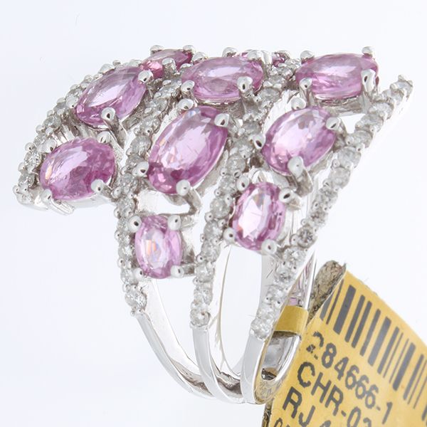 18K White Gold 4.14ctw Pink Sapphire & Diamond Ring **|**|** 18K White Gold 4.14ctw Pink Sapphire & Diamond Ring --- 68 Diamonds @0.66CT --- 10 Pink Sapphire @3.48CT --- Metal weight: 7.52 grams --- Metal: 18K White Gold --- SKU#284666 *** ; MSRP: $8200