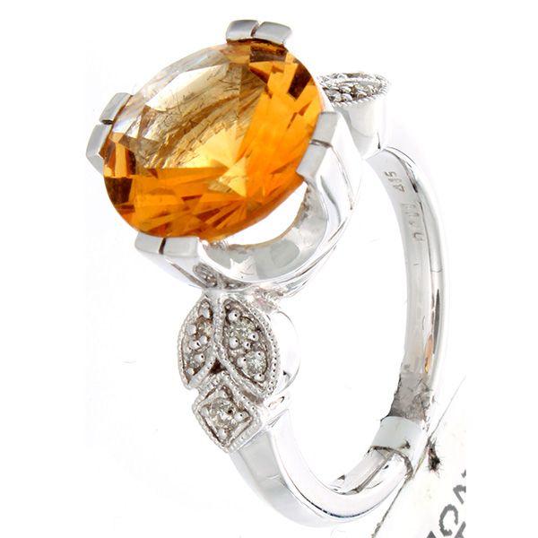 18K White Gold 4.26ctw Citrine & Diamond Ring **|**|** 18K White Gold 4.26ctw Citrine & Diamond Ring --- 10 Diamonds @0.11CT --- 1 Citrine @4.15CT --- Metal: 18K White Gold --- SKU#270166 *** ; MSRP: $3600