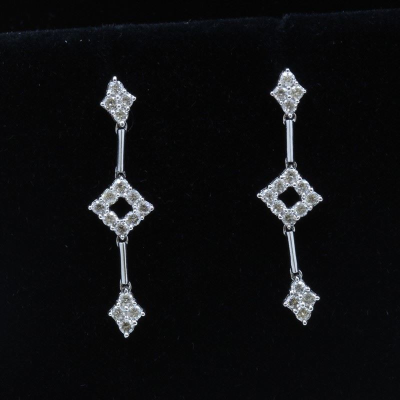 18K White Gold And Diamond Dangling Earring Round Shape Diamond-1.13ct Weight-3.86grams