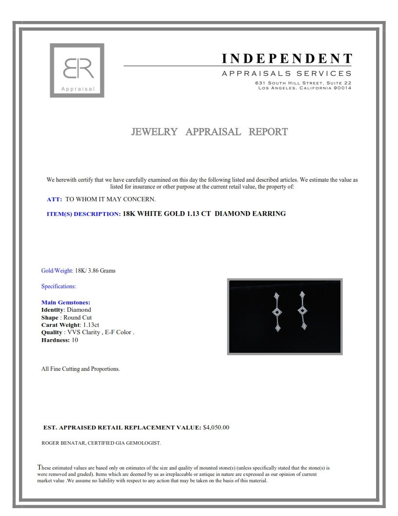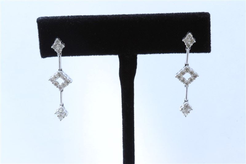 18K White Gold And Diamond Dangling Earring Round Shape Diamond-1.13ct Weight-3.86grams/Diamond Color: E-F /Diamond Clarity: VVS/Style#: LQ2979E/Item No : 46216