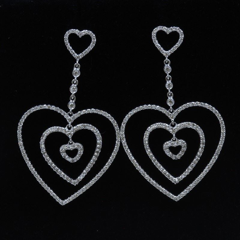 18K White Gold And Diamond Dangling Earring Round Shape Diamond-1.65ct Weight-9.24grams/Diamond Color: E-F /Diamond Clarity: VVS/Style#: LQ3155E/Item No : 47546