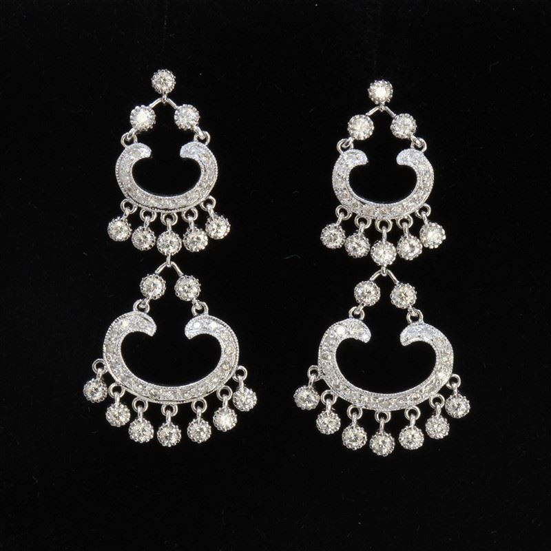 18K White Gold And Diamond Dangling Earring Round Shape Diamond-1.84ct Weight-8.96Grams/Diamond Color: E-F /Diamond Clarity: VVS/Style#: LQ1996E/Item No : 36257