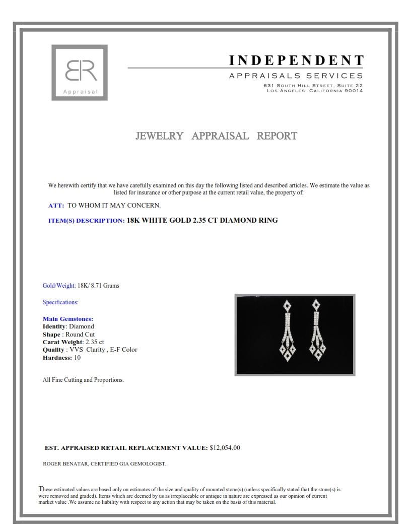 18K White Gold And Diamond Dangling Earring Round Shape Diamond-2.35ct Weight-8.71 Grams/Diamond Color: E-F /Diamond Clarity: VVS/Style#: LQ3698E/Item No : 54055