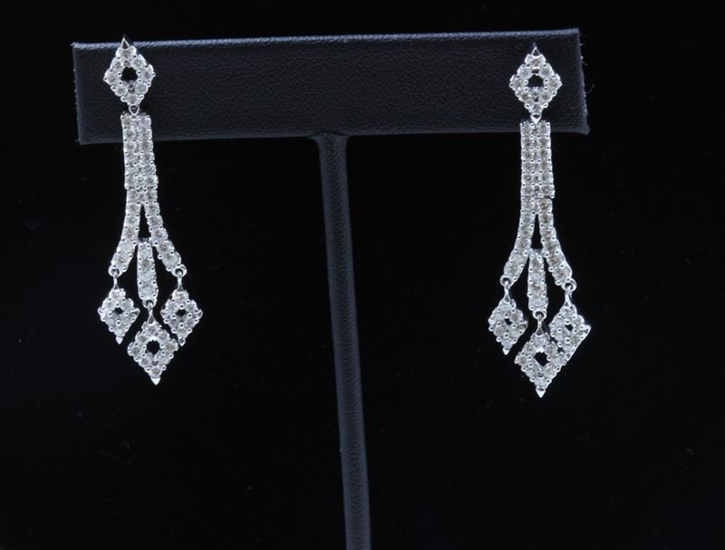18K White Gold And Diamond Dangling Earring Round Shape Diamond-2.36CT Weight-8.60 Grams/Diamond Color: E-F /Diamond Clarity: VVS/Style#: LQ4294E/Item No : 59710