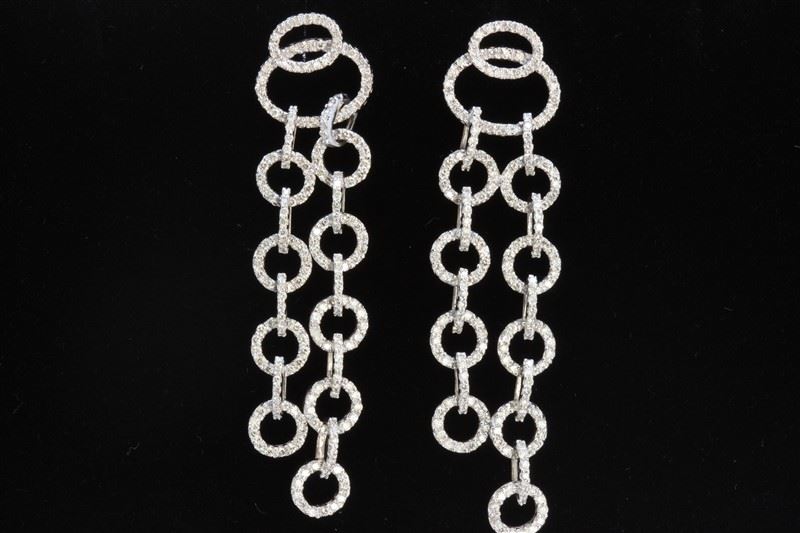 18K White Gold And Diamond Dangling Earring Round Shape Diamond-3.02ct Weight-12.34 Grams/Diamond Color: E-F /Diamond Clarity: VVS/Style#: LQ2168E/Item No : 43624
