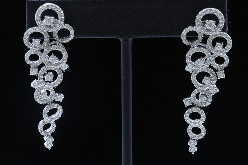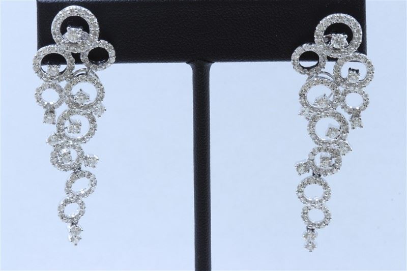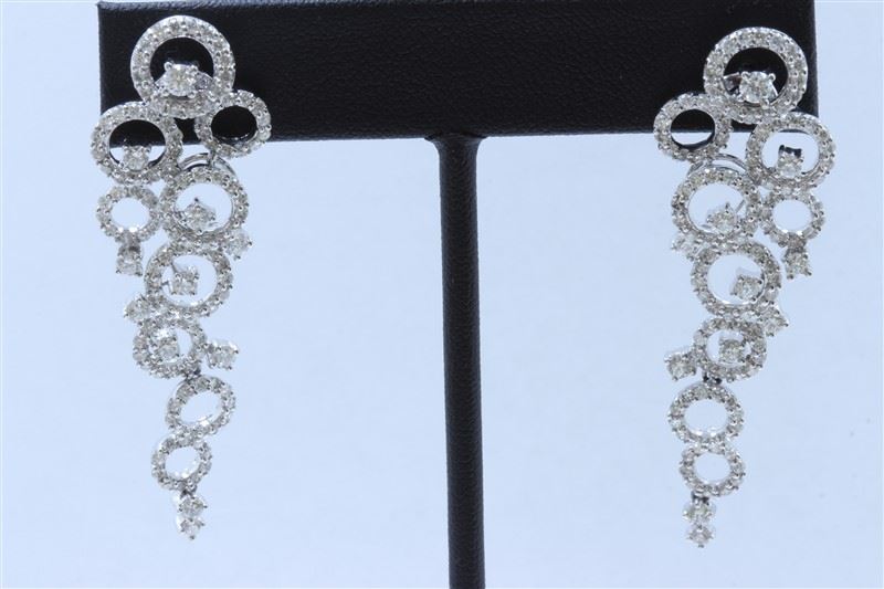 18K White Gold And Diamond Dangling Earring Round Shape Diamond-3.39ct Weight-14.35Grams/Diamond Color: E-F /Diamond Clarity: VVS/Style#: LQ3772E/Item No : 54840