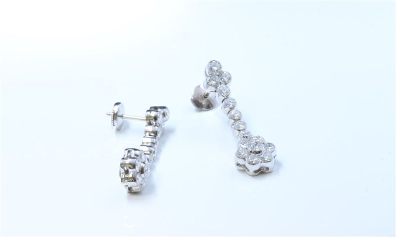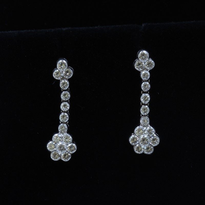 18K White Gold And Diamond Dangling Earring Round Shape Diamond(invisible Setting)- 2.75ct Weight-6.9 Grams/Diamond Color: E-F /Diamond Clarity: VVS/Style#: 383E/Item No : 37004